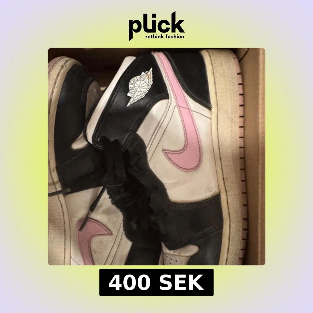 Säljer ett par Nike Air Jordans i svart och vitt med rosa detaljer. Äkta köpa för 2700 men det var för två år sedan så de är använda