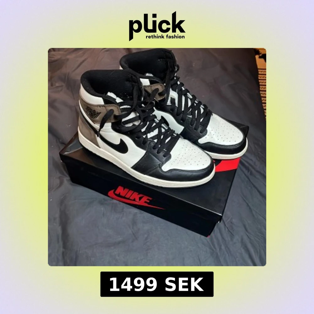 Snygga Nike Air Jordans i svart och vit med klassisk design. Skorna har snörning och en hög siluett. Perfekta för sneaker-entusiaster som vill ha en stilren look. Änvant typ 3 gång