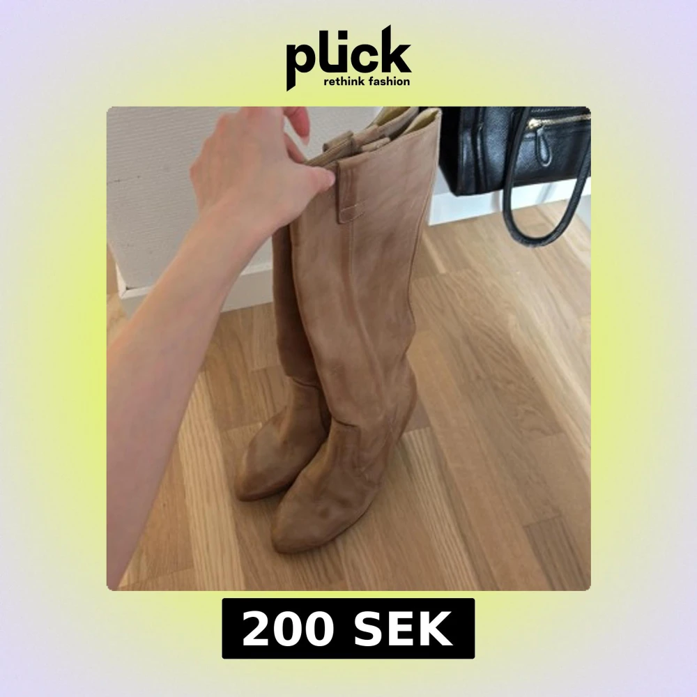 Säljer ett par snygga beiga stövlar i skinn med klack och rund tå. Stövlarna är knähöga och har en stilren design utan synliga detaljer som snörning eller dragkedja. Perfekta för att lyfta din outfit! Bootsen har lite vattenskador men annars i bra skick🥰