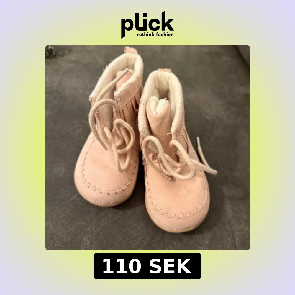 Supersöta beiga boots i mocka med snörning och dekorativa fransar runt skaftet. Insidan är fodrad med mjukt vitt tyg som gör dem extra sköna. Perfekta för små fötter som vill ha både stil och komfort. Står ej för frakten