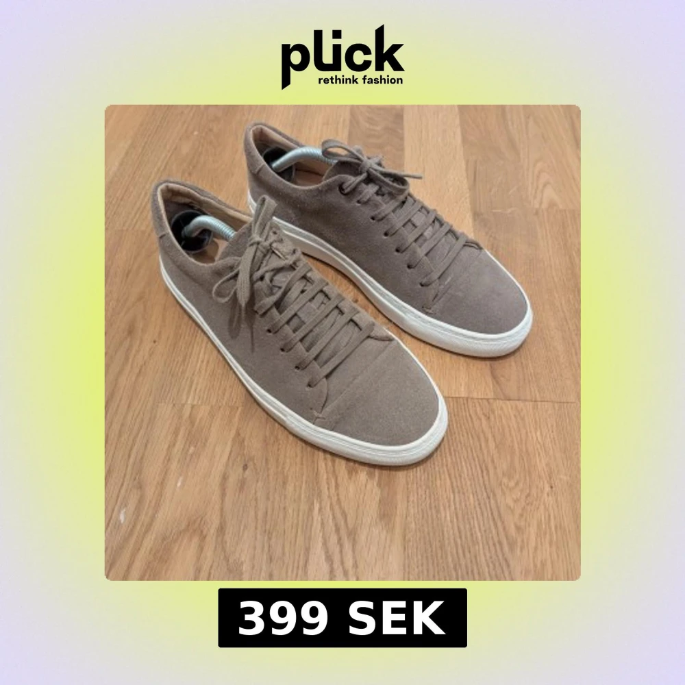 Snygga bruna/beige sneakers i mocka med snörning och vit sula. Från Suitsupply i stl 42. Sparsamt använda.