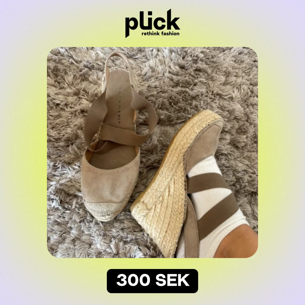 Säljer ett par snygga beige sandaler med kilklack. De är gjorda i mocka och har breda bruna remmar som ger en skön passform. Perfekta för sommaren och passar både till vardags och fest. Ny pris 500