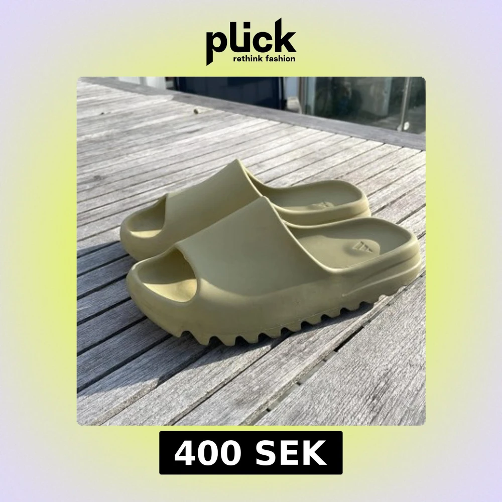 Säljer ett par beige Adidas Yeezy Slides med chunky, sågtandad sula och öppen tå. Tillverkade i syntetmaterial och har en clean, minimalistisk design som är riktigt trendig just nu. Perfekta för sommaren och chill dagar.