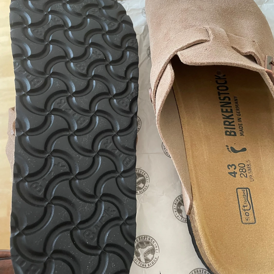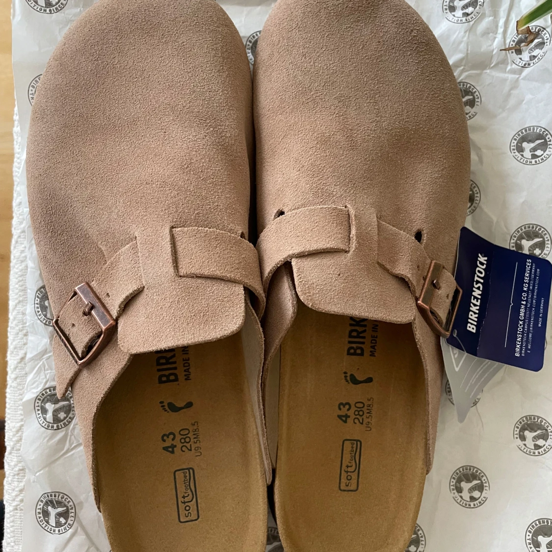 Birkenstock Boston – strl 43, färg Taupe – i princip nya! Säljer ett par nästan helt nya Birkenstock Boston i färgen Taupe, storlek 43 EU. Använda max 5 gånger inomhus – lapparna sitter fortfarande kvar! Säljes då de inte riktigt passar min stil och det blev för dyrt att returnera. Inköpta för ca 1900 kr. Kan eventuellt ordna köpbevis vid behov, men skicket talar för sig själv. Modellen är från herravdelningen, men funkar lika bra för alla