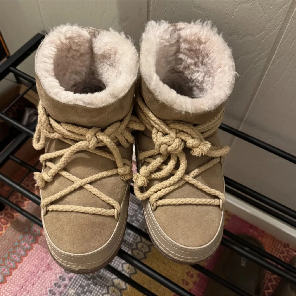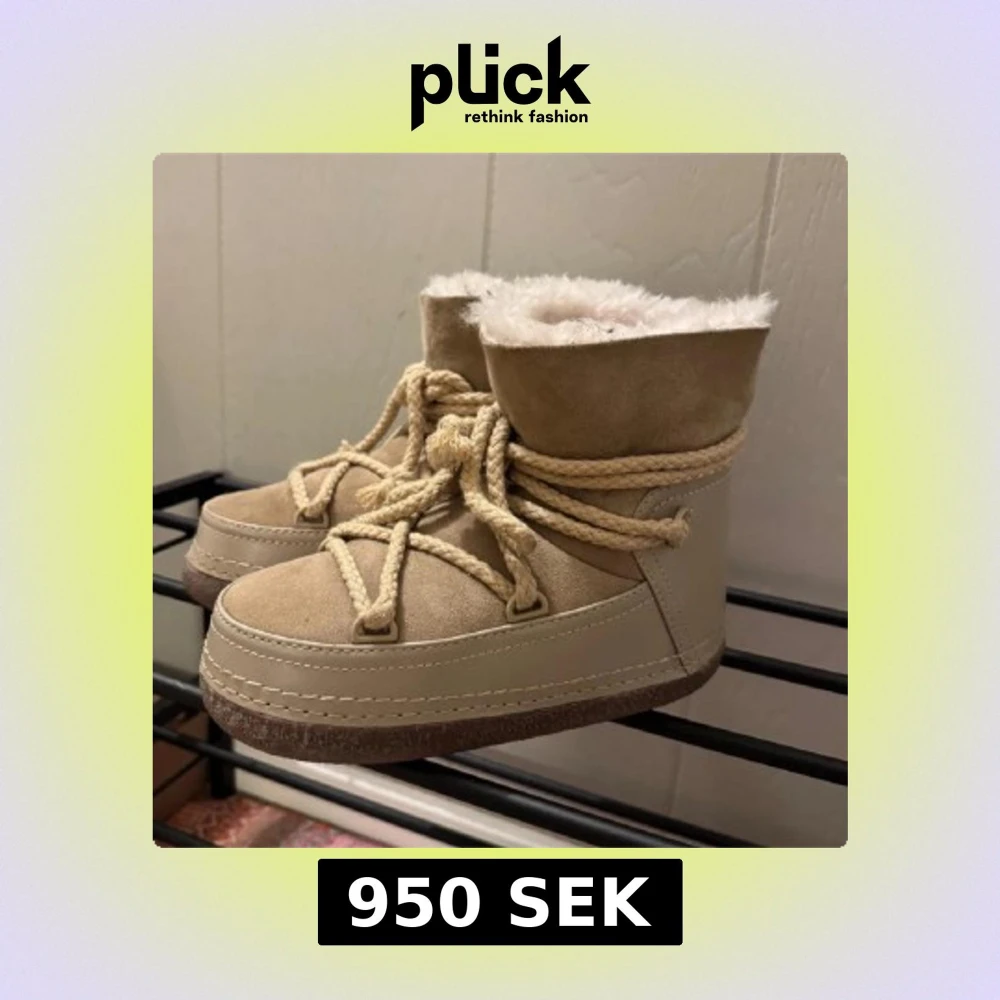 Snygga och varma beige boots från Inuikii med snörning och mjukt foder. Perfekta för kalla dagar med sin stilrena design och bekväma passform. Säljer dom de dom tyvärr är alldeles förstora..