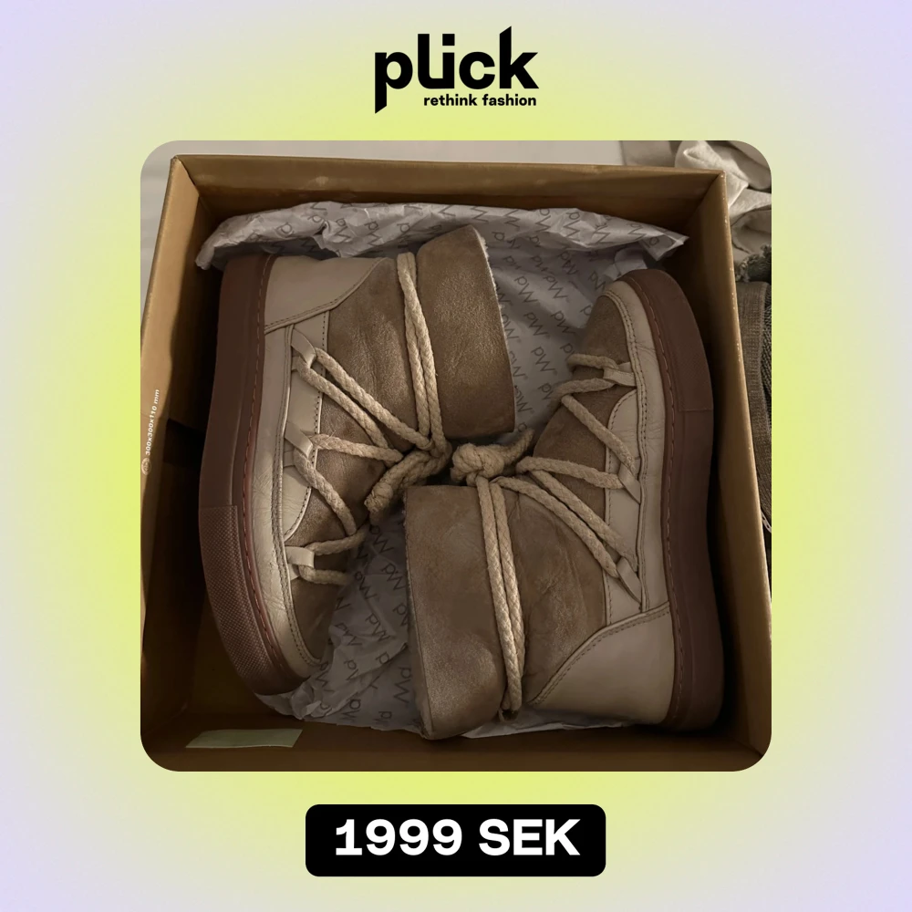 Säljer ett par snygga och varma beige boots från Inuikii. De är i mycket bra skick och har en cool snörning framtill. Perfekta för vintern med sin robusta sula och mjuka insida. De är gjorda i skinn och mocka vilket ger en lyxig känsla. Storlek 36. Nypris: 2999