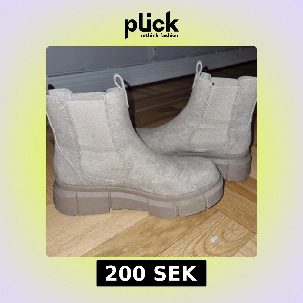 Snygga beige boots i mocka med grov sula och elastiska paneler för enkel på- och avtagning. Perfekta för en stilren look.