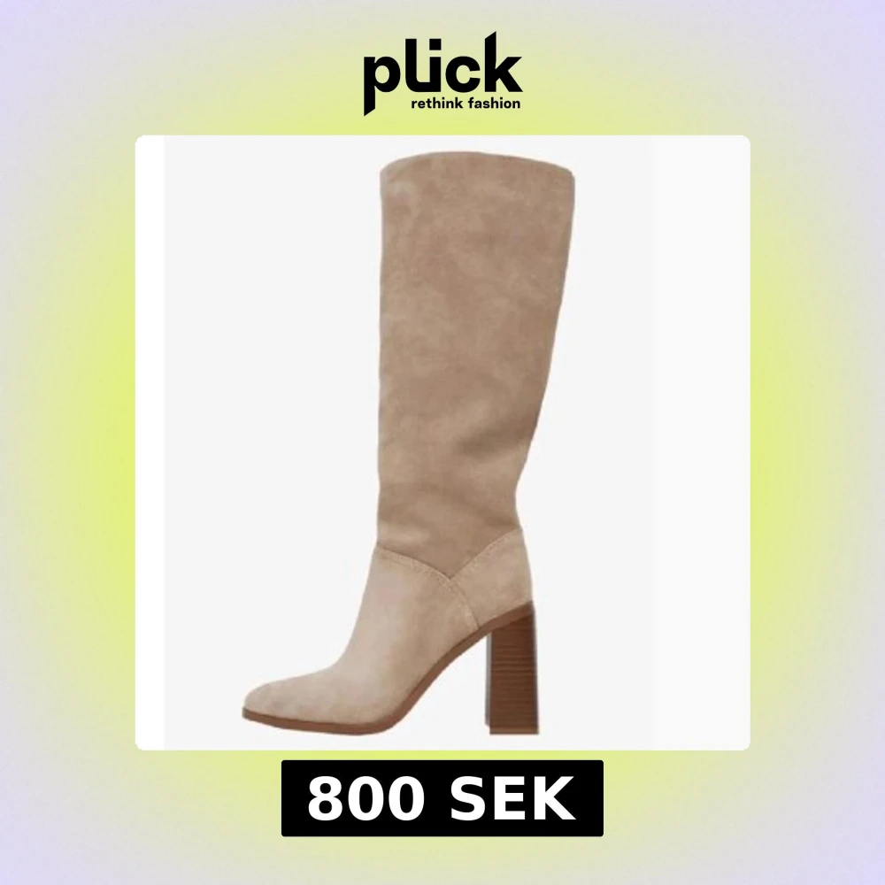 Ett par snygga beige boots i äkta mocka med hög klack. Såå snygga och slutsålda! Lite smutsiga vid tårna, se bild men annars i bra skick!