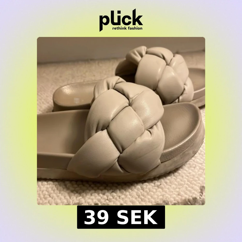Snygga beige sandaler från H&M med chunky flätad rem över foten och platt sula. Tillverkade i mjukt syntetmaterial som ger en lyxig känsla. Perfekta för varma dagar när du vill ha både stil och komfort.