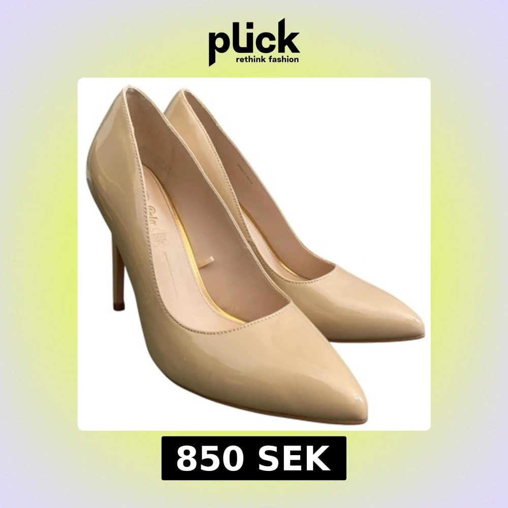 Snygga pumps från Buffalo i beige lack med spetsig tå och hög klack.