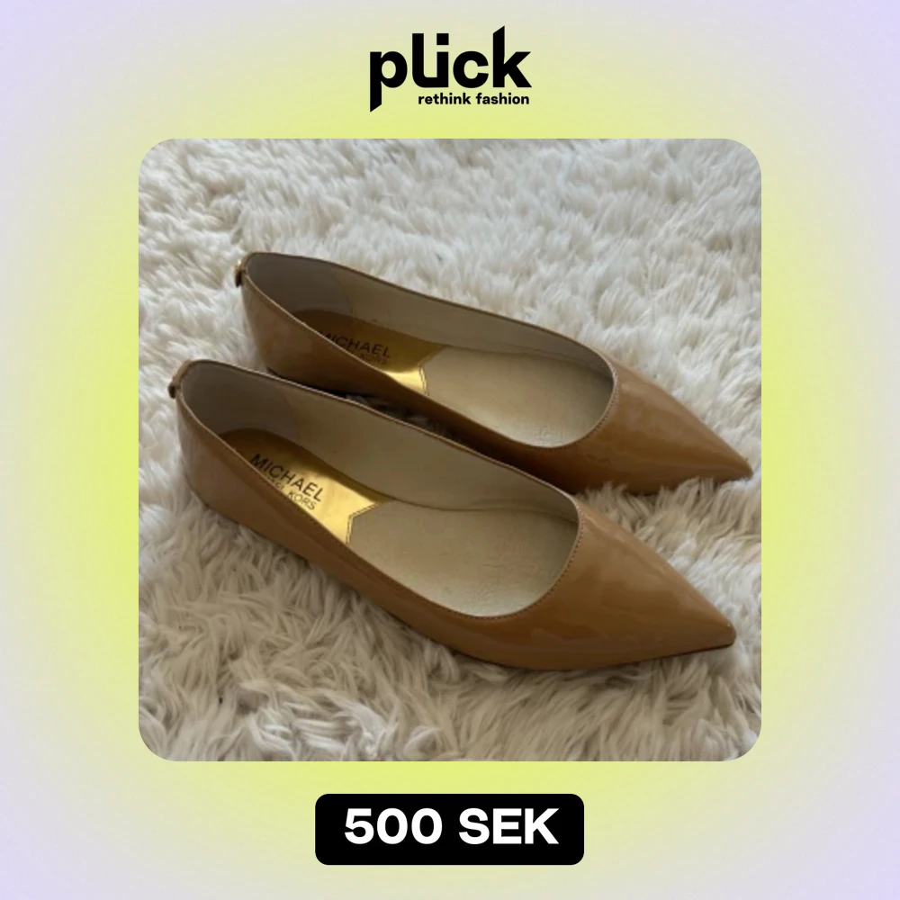 Beige ballerinaskor från Michael Kors med glansig finish och spetsig tå, med en elegant look. Gjorda av skinn. Perfekt till vardag och fest. Använda 1 gång då dom är för små. Storlek 36/36,5 men passar perfekt för dig som bär storlek 37!🌺