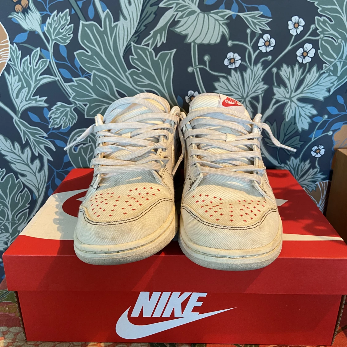 Ett par nästan oanvända nike dunks. Har kanske använts 5-10 gånger. Lite smuts på framsidan som jag tror går att ta bort. Köptes på sneakersnstuff för 1499kr Säljer eftersom att jag har tröttnat på skorna. Vid fler bilder hör av dig!