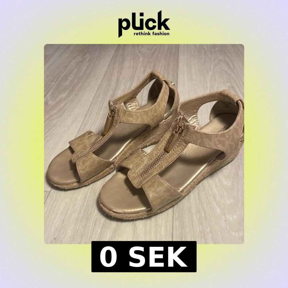 Snygga beige sandaler från Michael Kors med kilklack och dragkedja framtill. Sandalerna har ett diskret mönster och en bekväm passform. Perfekta för sommarens alla tillfällen. Pris får diskuteras!