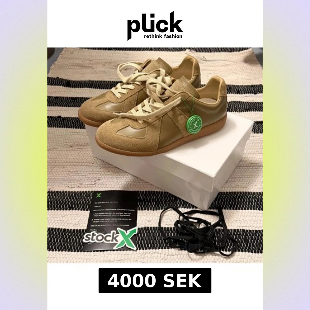 Maison Margiela sneakers i beige och ljusbrun färg med snygga paneler i mocka och skinn. Klassisk rund tå, platt gummisula och snörning framtill. Kommer med extra svarta skosnören och originalkartong. Perfekt för dig som gillar stilrena och trendiga sneakers.