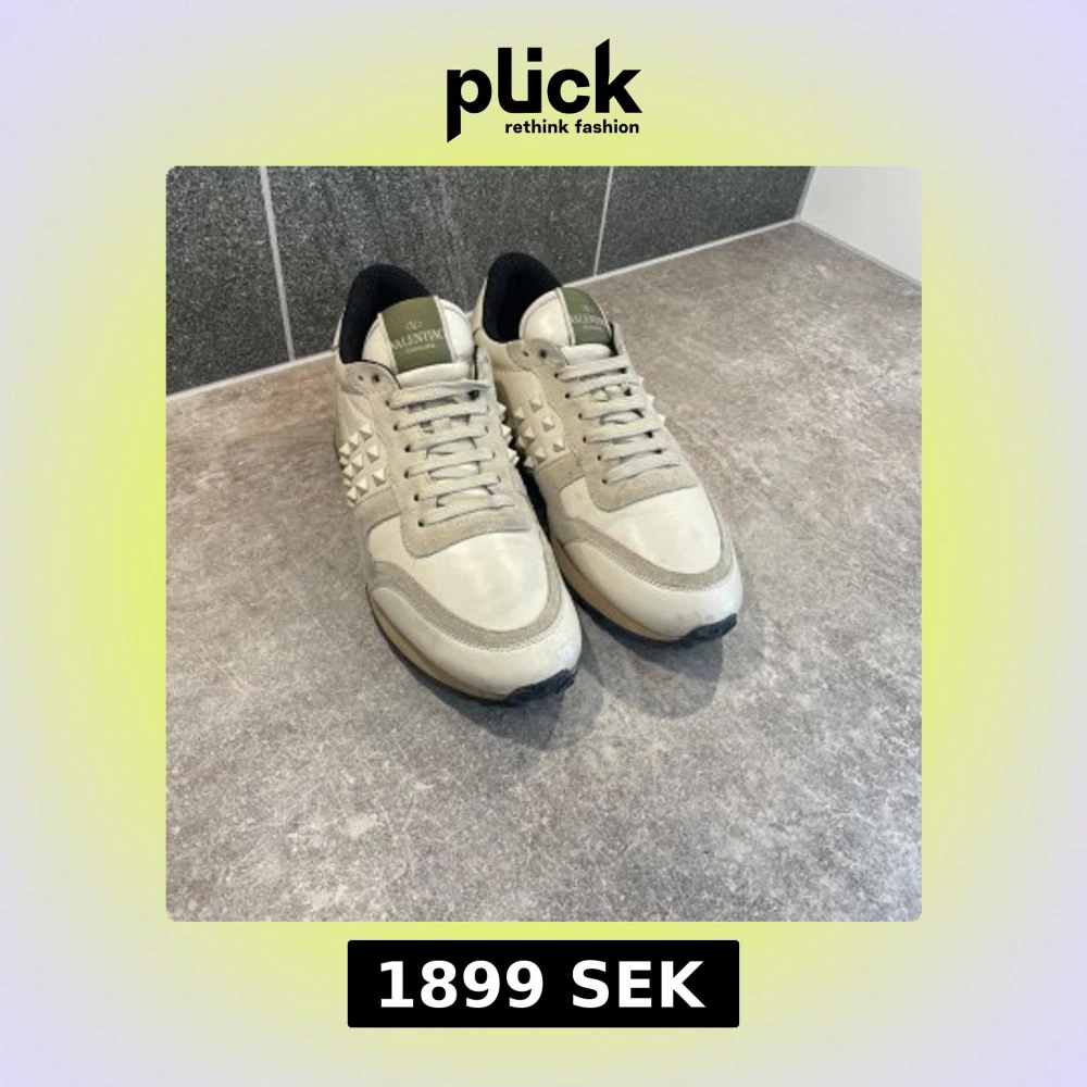 Snygga beige sneakers från Valentino med ikoniska nitar på sidorna. Skorna har en kombination av skinn och mocka, vilket ger en lyxig känsla. Perfekta för att lyfta din stil med en touch av elegans.