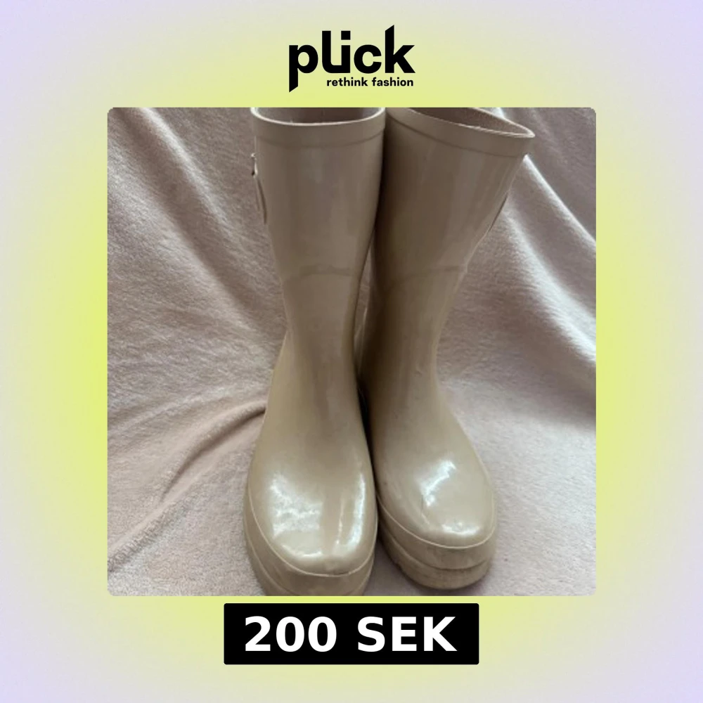 Snygga beige stövlar i syntetmaterial med dekorativt spänne på sidan. Perfekta för regniga dagar och ger en stilren look. De har en klassisk design som passar till många olika outfits.