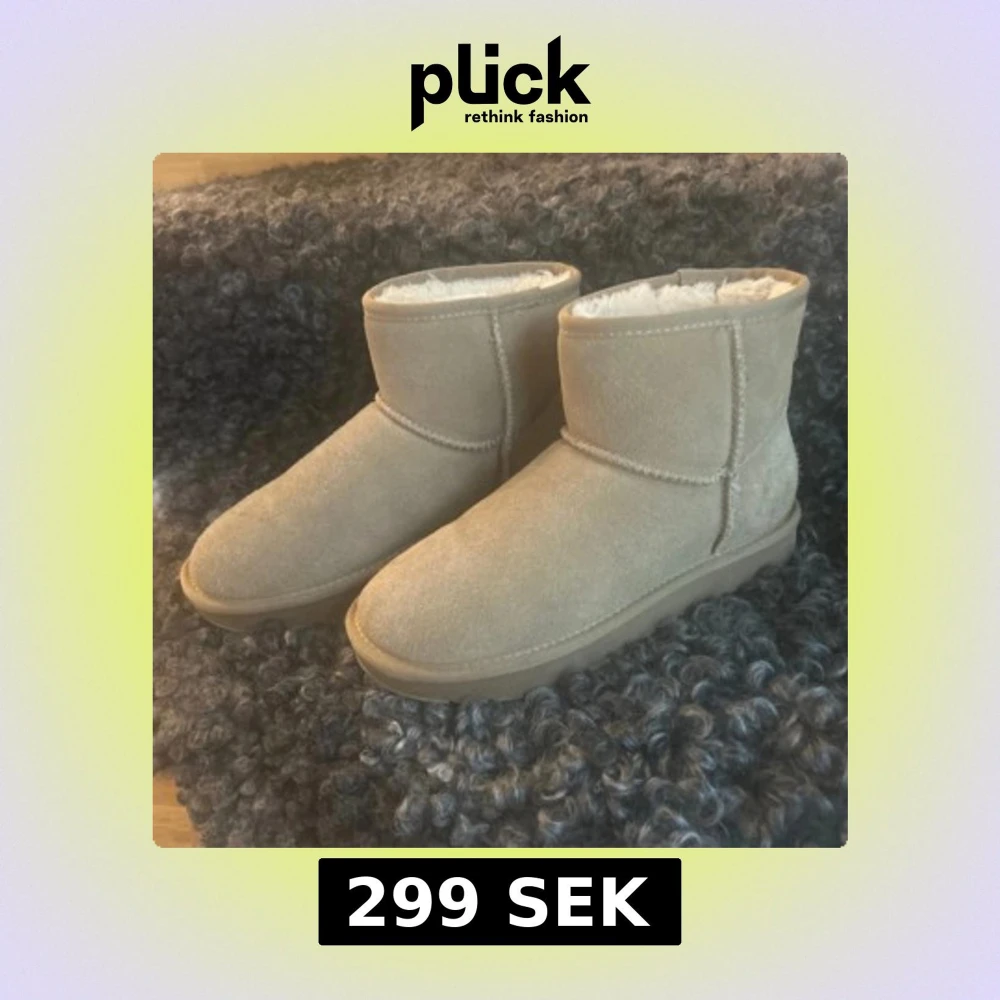 Mysiga Ugg liknade skor i beige mocka med mjukt vitt foder på insidan. Använda nån gång bara! Nypris 599