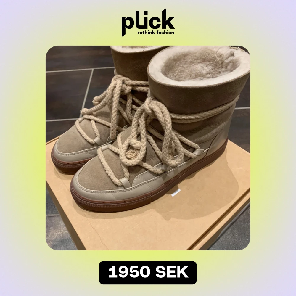 Säljer ett par snygga och varma vinterboots från Inuikii i beige mocka och skinn. De har en mysig pälsfodring och rejäla snören för en cool look. Perfekta för kalla vinterdagar! 🥶. Lite tunt med foder högst upp på höger fot men inget som stns eller mörks nör man har skon på sig, se bild. Har bud på 1850 kr.