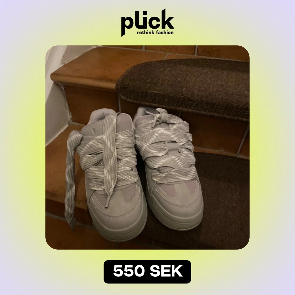 Snygga grå sneakers från Bershka i mycket bra skick. De har en chunky design med breda snören och en bekväm sula. Perfekta för både vardag och festliga tillfällen.