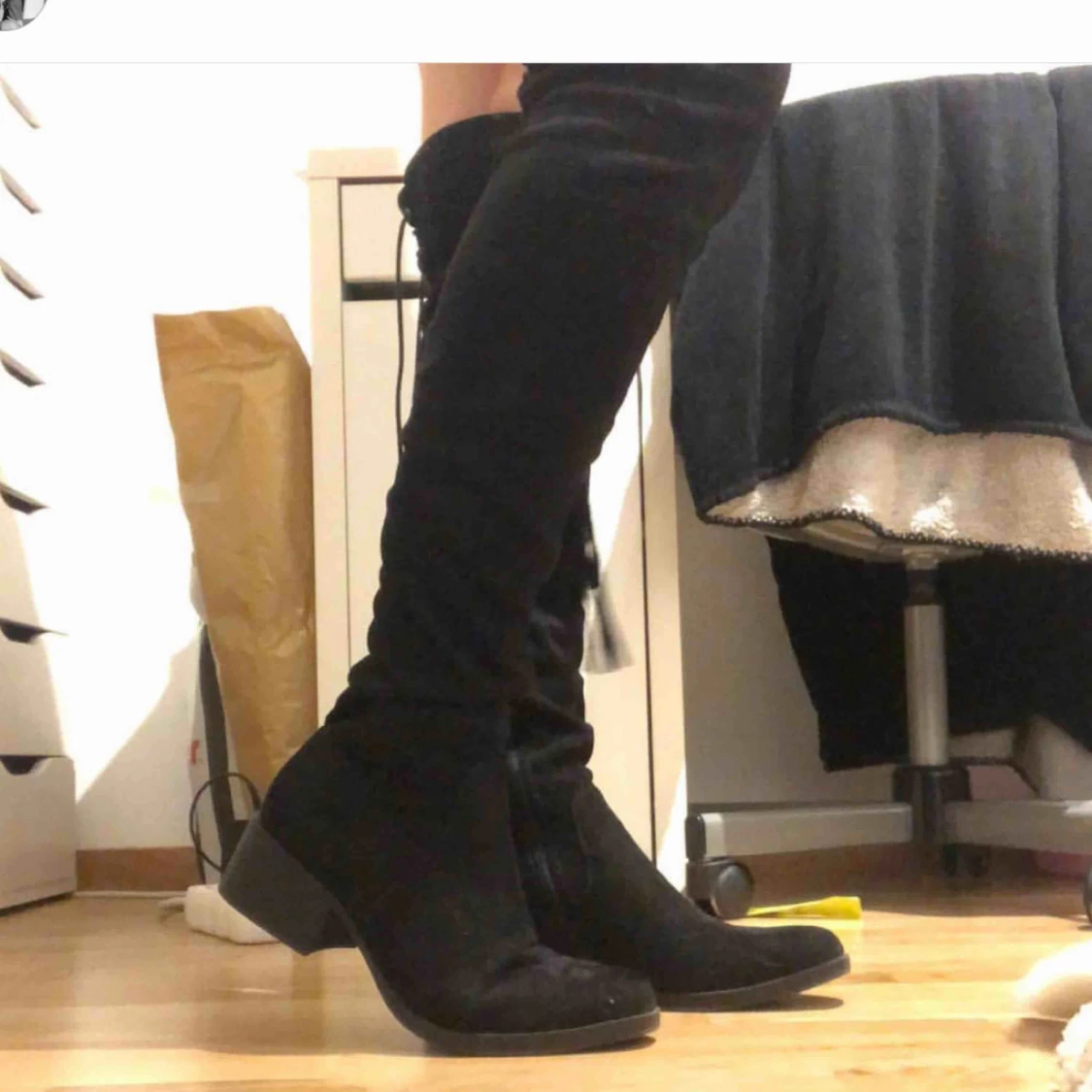 Overknees! Fett snygga både till vardagen och festligheter. Svarta med snörning bak. Dragkedja på sidan vilken gör att man kommer i de enkelt. Köpte de för 400kr.