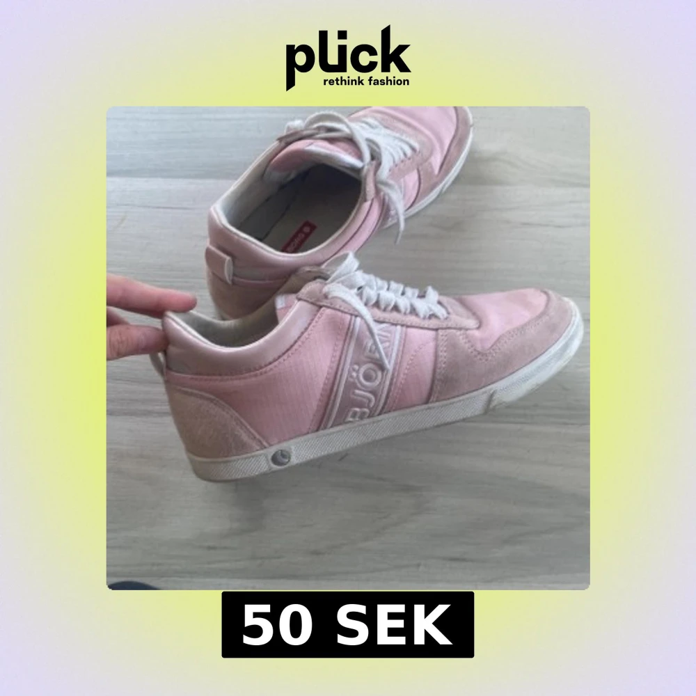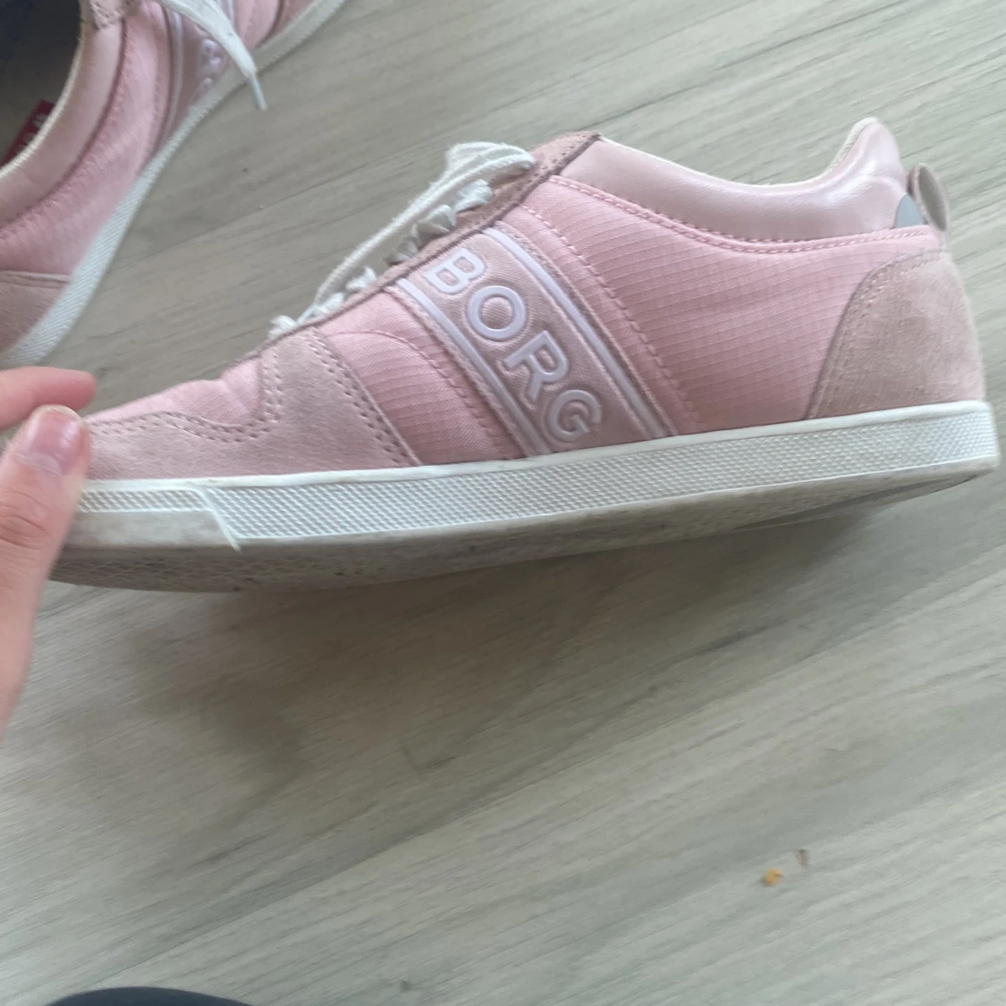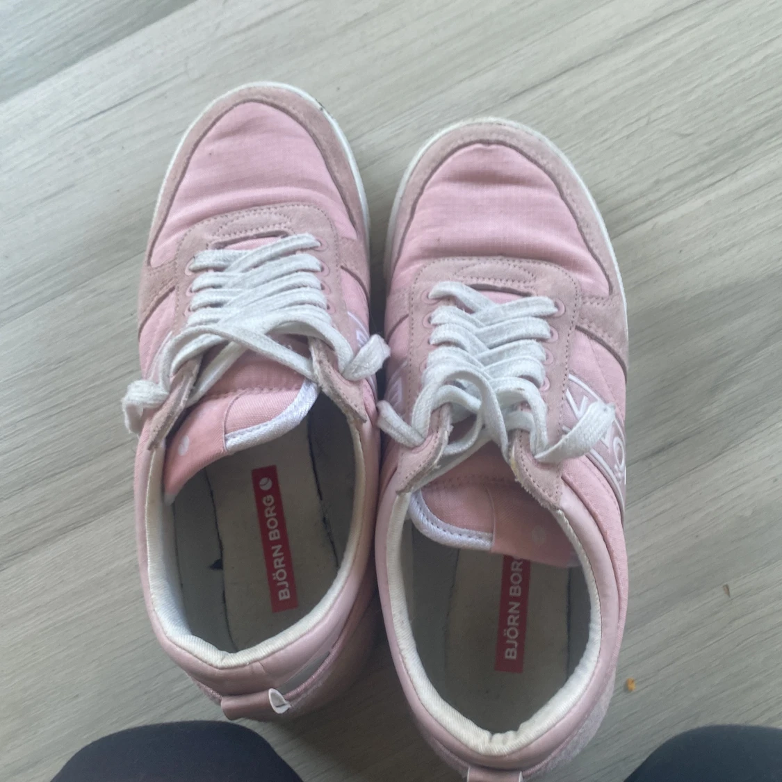 Snygga rosa sneakers från Björn Borg med vita snören och detaljer i mocka och textil. Skorna har en klassisk låg profil, rund tå och vit sula.