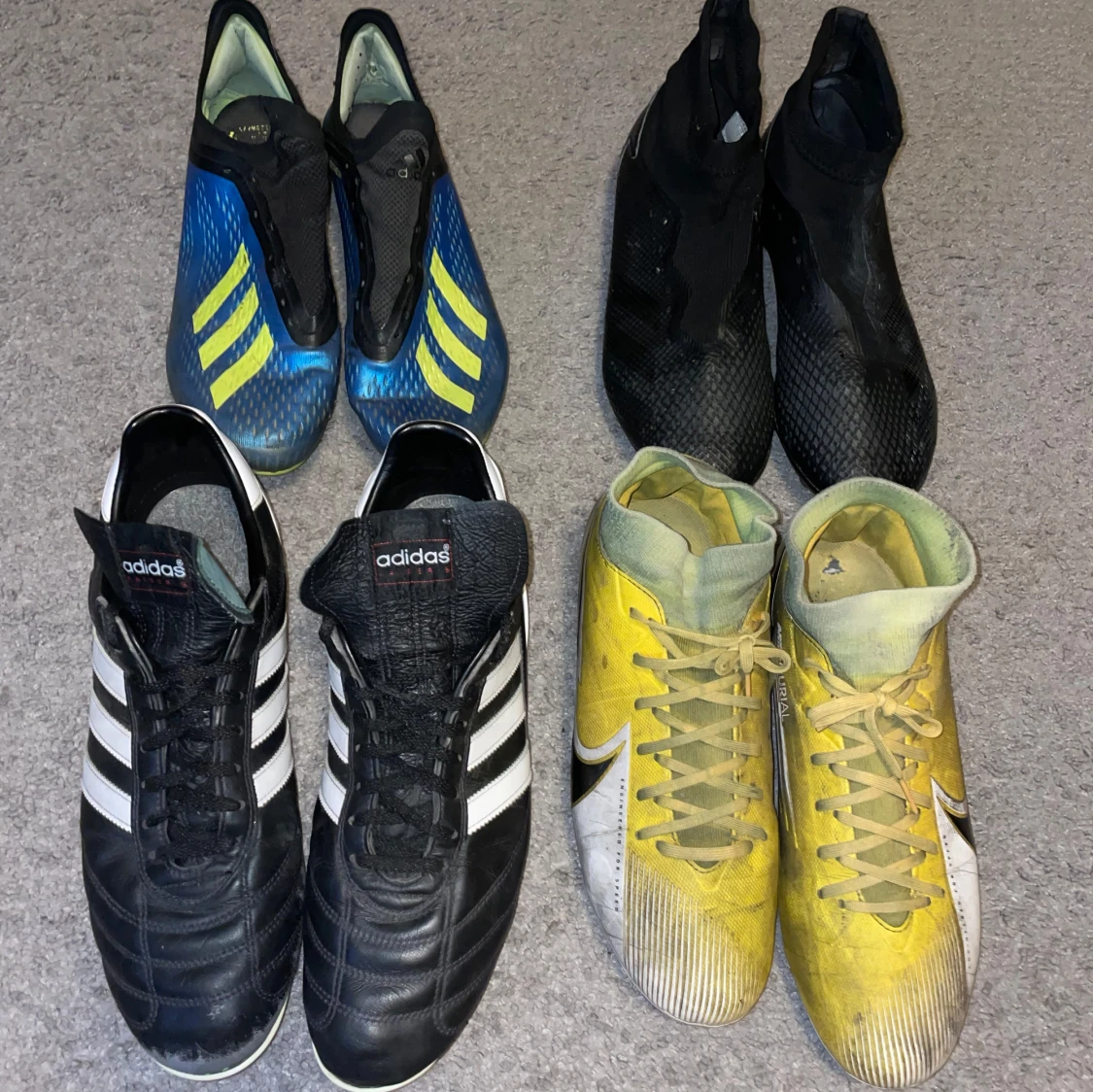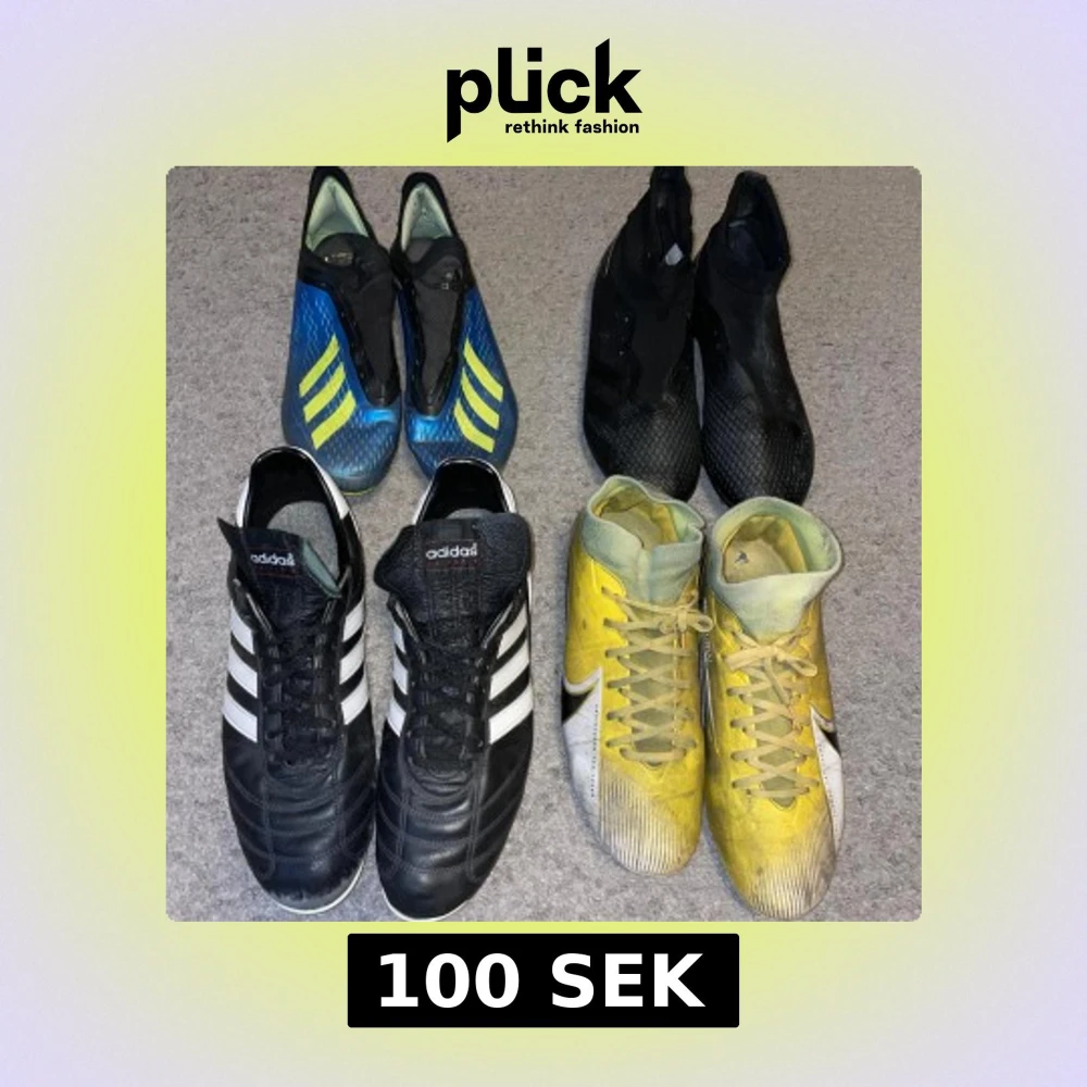 Säljer dessa gamla fotbollskor eftersom dom ej kommer till någon användning längre. Adidas kasier stl 46. Nike mercurial stl 43. Adidas speedmesh stl 44. Adidas predators stl 44. Priserna går att diskuteras 1 st 100kr alla skor 300kr