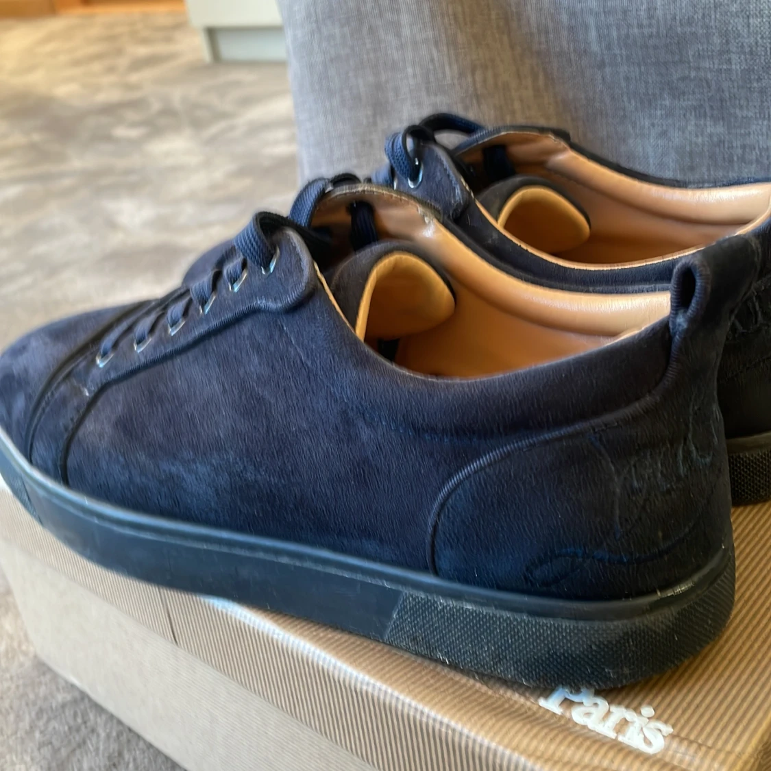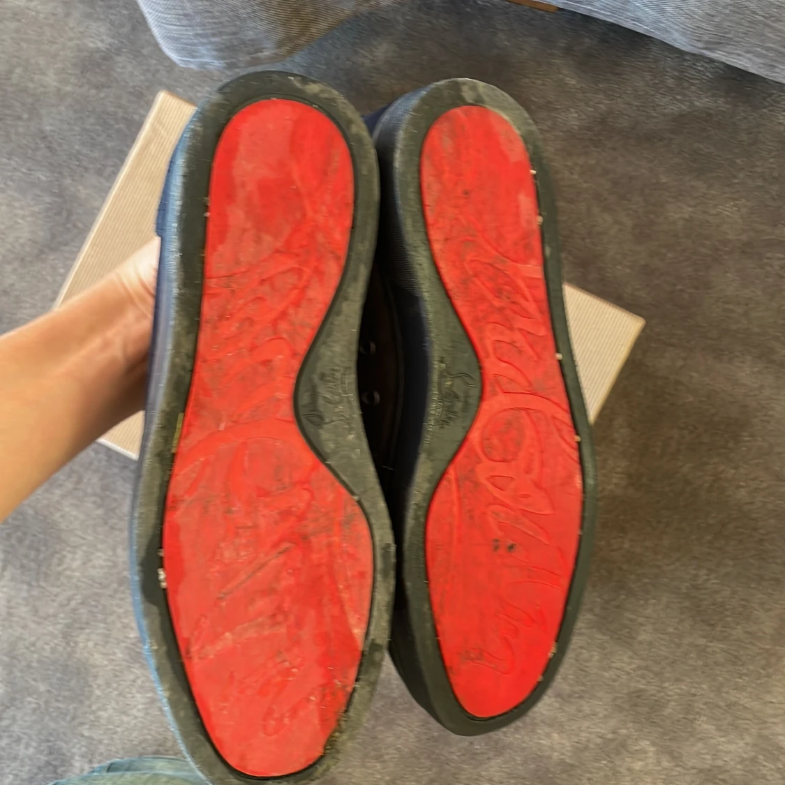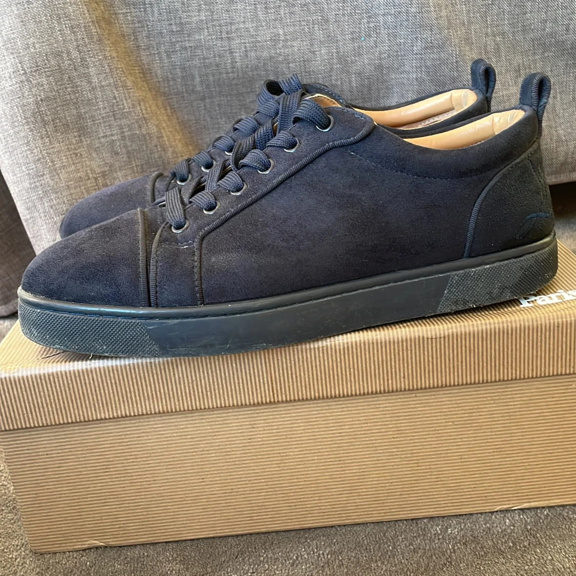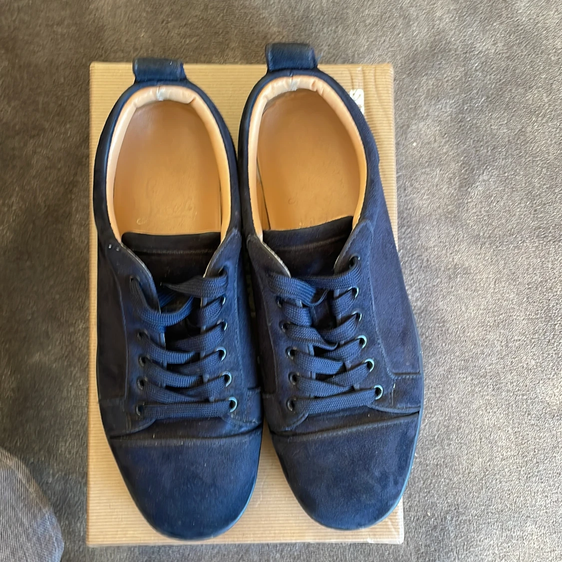 Säjer ett par mörkblå loubotins som har varit sparsamt använda. Inga defekter, lite smutsiga bara. Rengörs innan försäljning. Priset är ej hugget i sten så kontakta gärna om ni har frågor, box och dustbag ingår👍