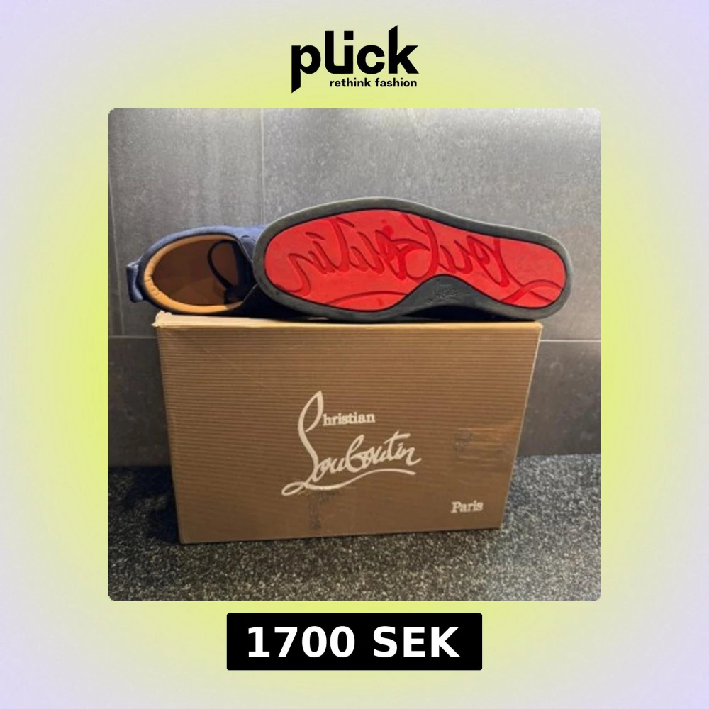 ‼️ Går att sänka pris vid snabb affär‼️Snygga sneakers i mörkblå mocka från Christian Louboutin med den ikoniska röda sulan och snörning framtill. Insidan är i beige skinn och skon har en rund tå. Perfekt för dig som vill sticka ut med exklusiva detaljer och lyxig känsla.