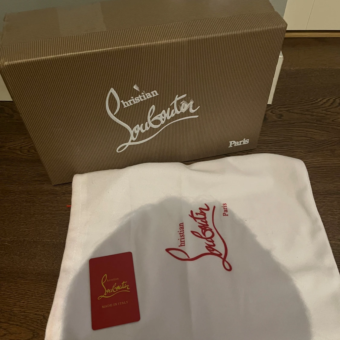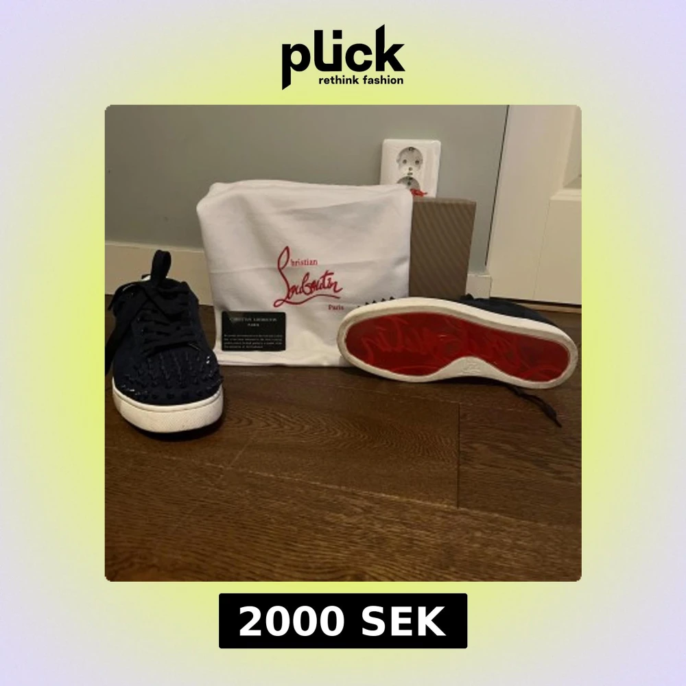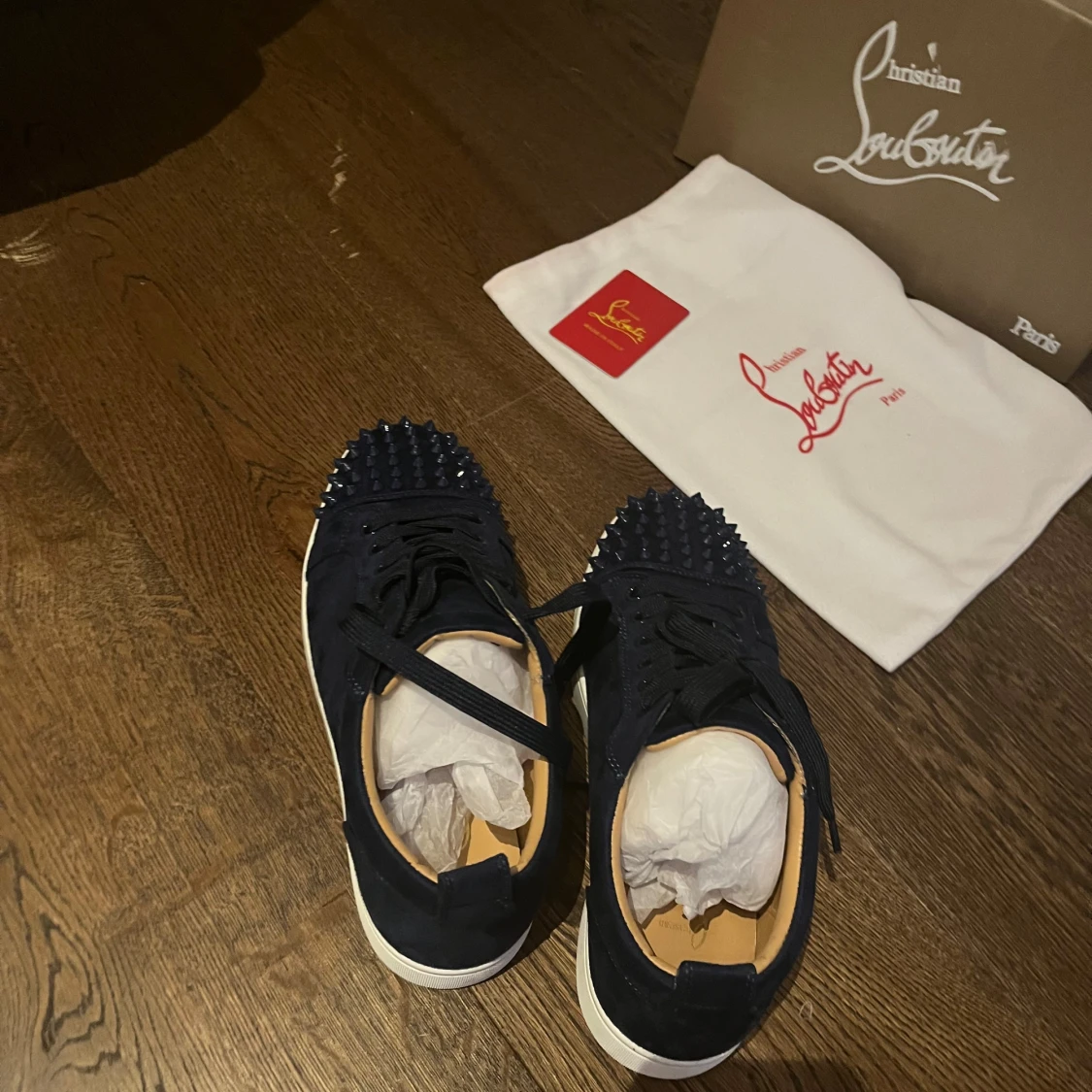 Jag säljer mina feta Loubs med nitar. Nitarna är blåa matchande med färgen på skorna 💙 Den har ju såklart den ikoniska röda sulan till också. Använd bara 3 gånger. Skriv om funderingar ❤️🩹 kan passa 41