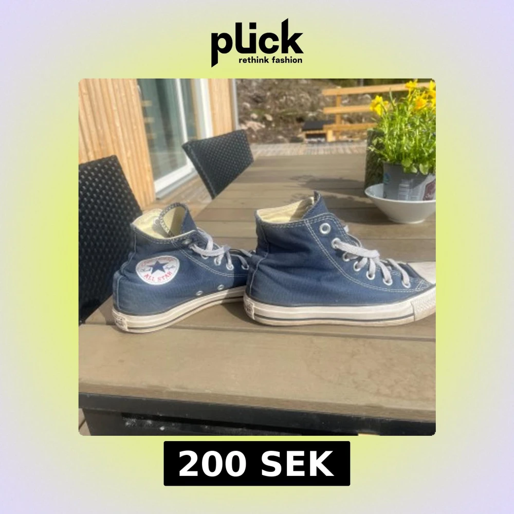 Säljer ett par klassiska blå Converse All Star sneakers i storlek 37. Skorna är använda en del men är ändå i bra skick!
