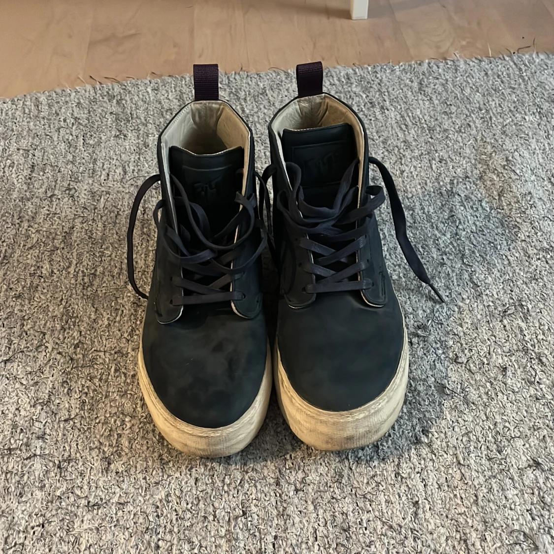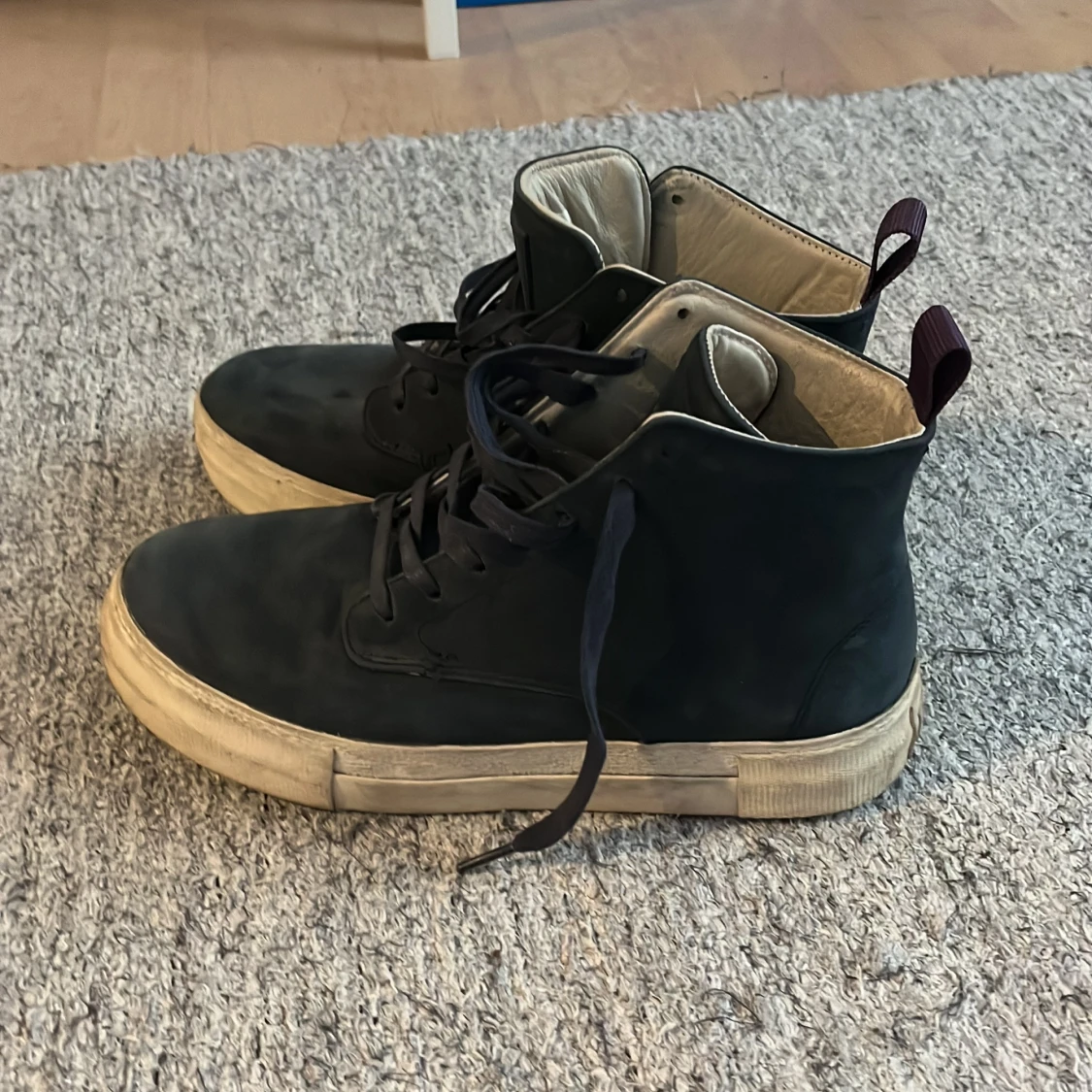 Snygga blå höga sneakers från Eytys med grov vit sula och klassisk snörning. Använda ett fåtal gånger men väldigt fin och bra skick ändå!😊