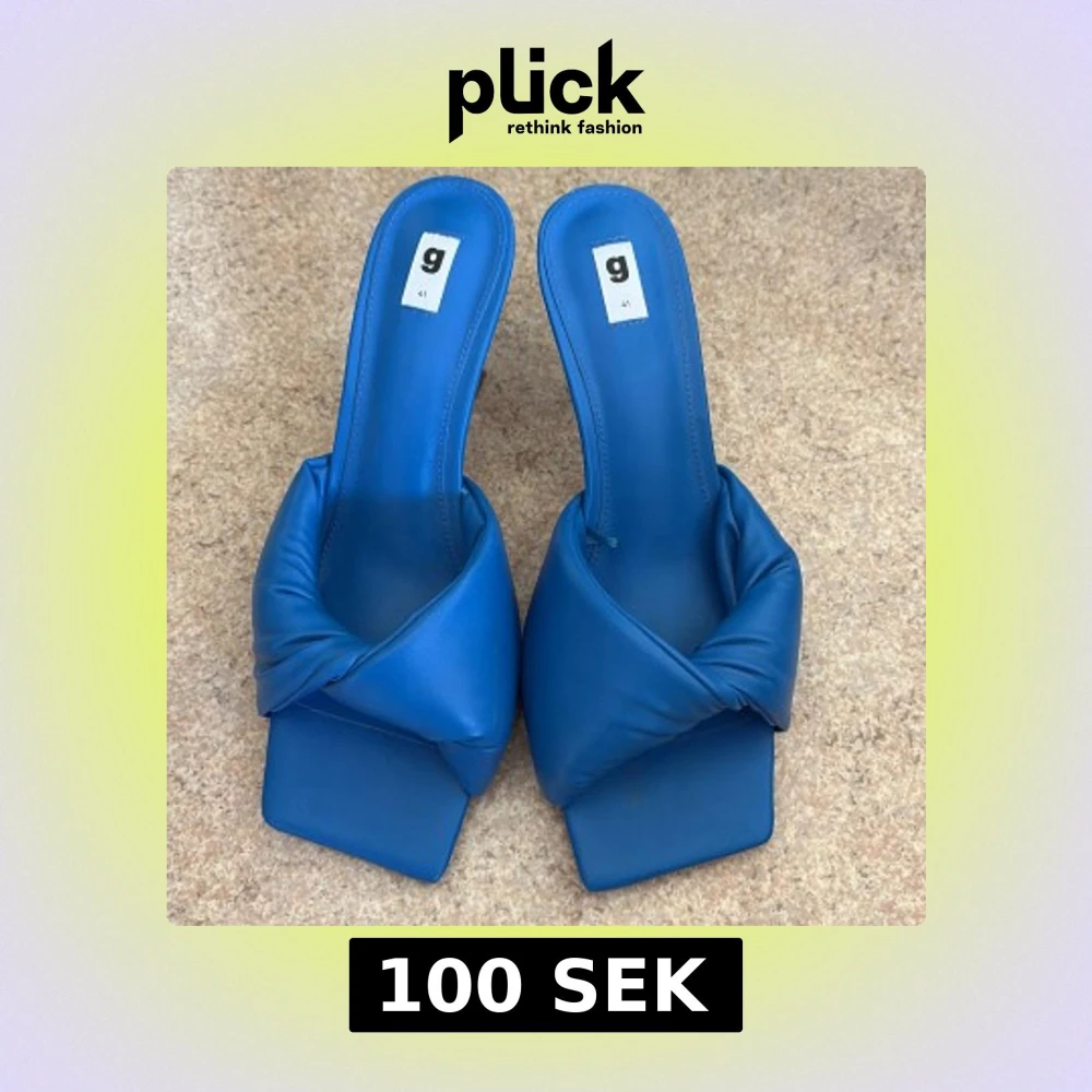 Snygga blå sandaler från Ginatricot med fyrkantig tå och vadderad, tvistad rem över foten. Skorna har klack och är tillverkade i ett mjukt syntetmaterial som ger en cool statement-look. Perfekta för dig som vill sticka ut med färg och form.