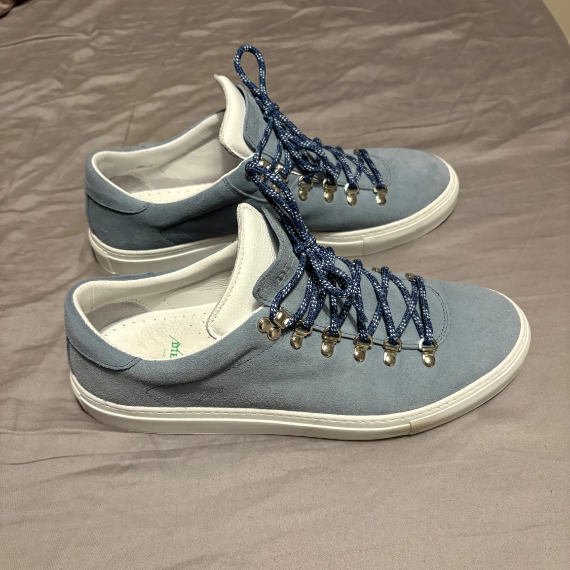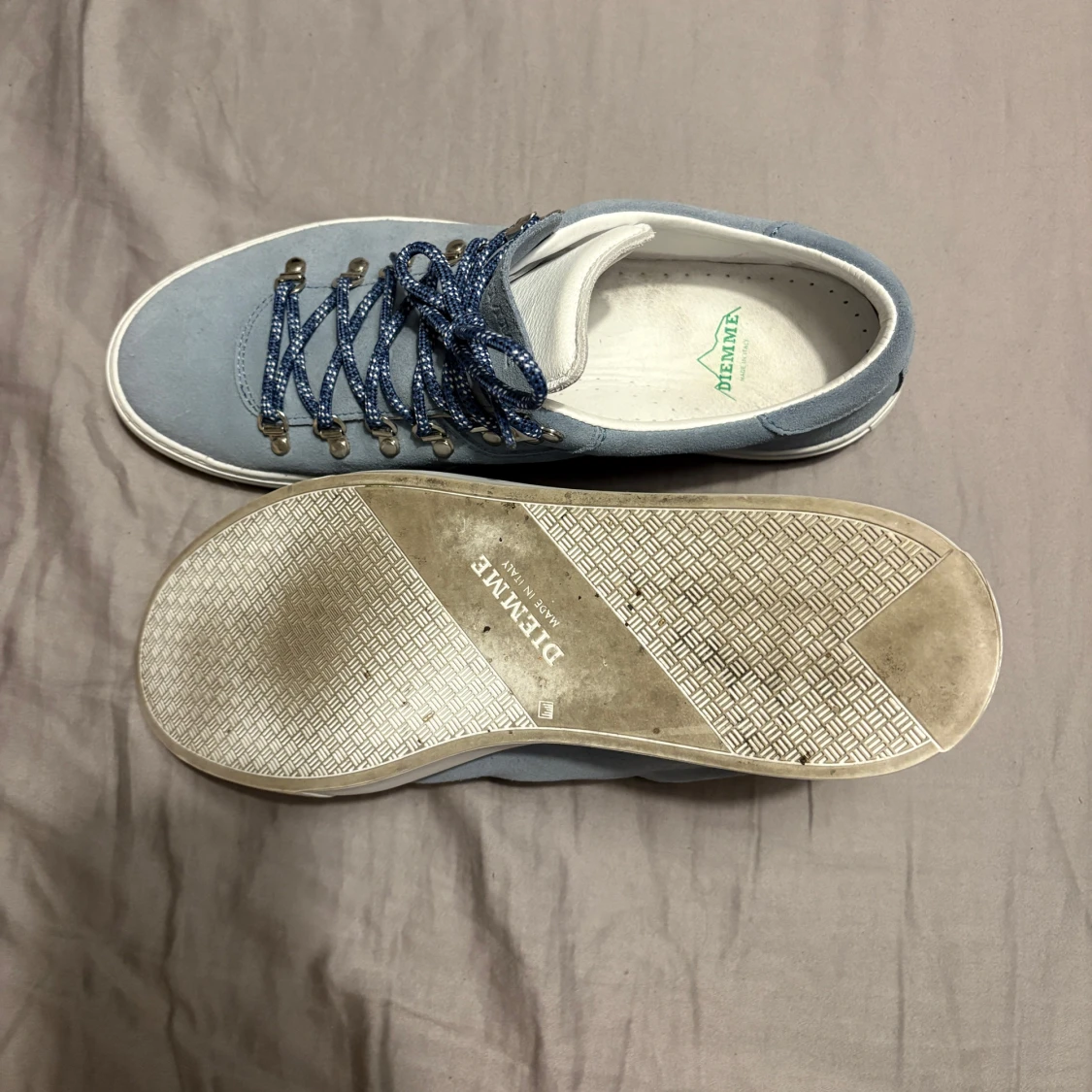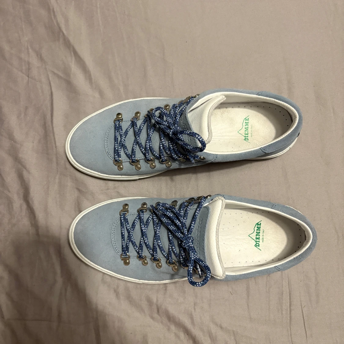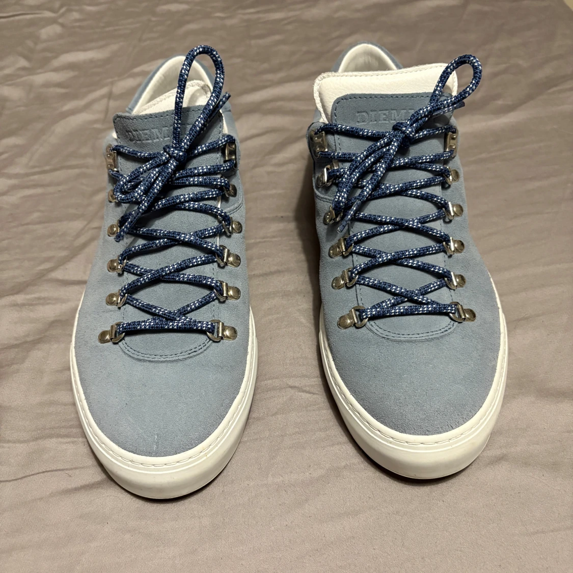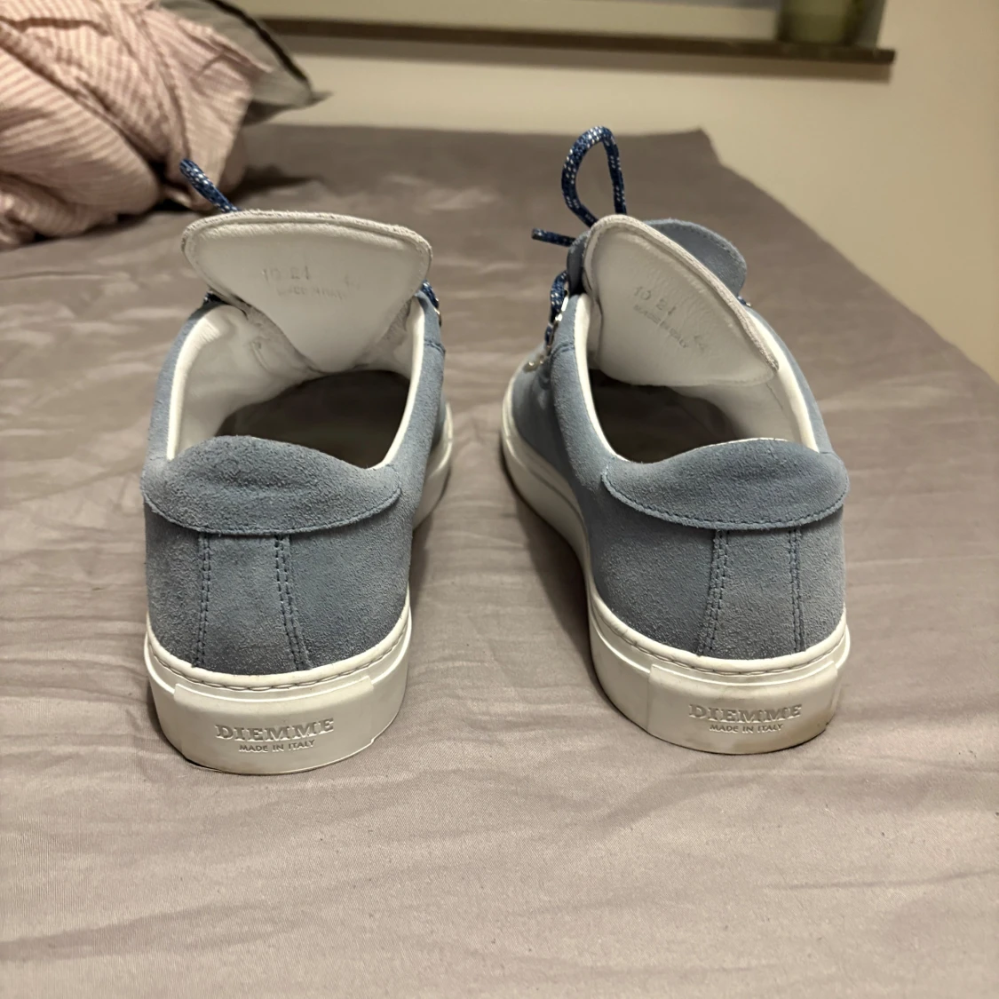 Snygga sneakers från Diemme i ljusblå mocka med vit sula och vit insida. Använda max 3 gånger precis som nyskick. Box,dustbag plus extra snörning tillkommer, vid fler bilder skriv privat