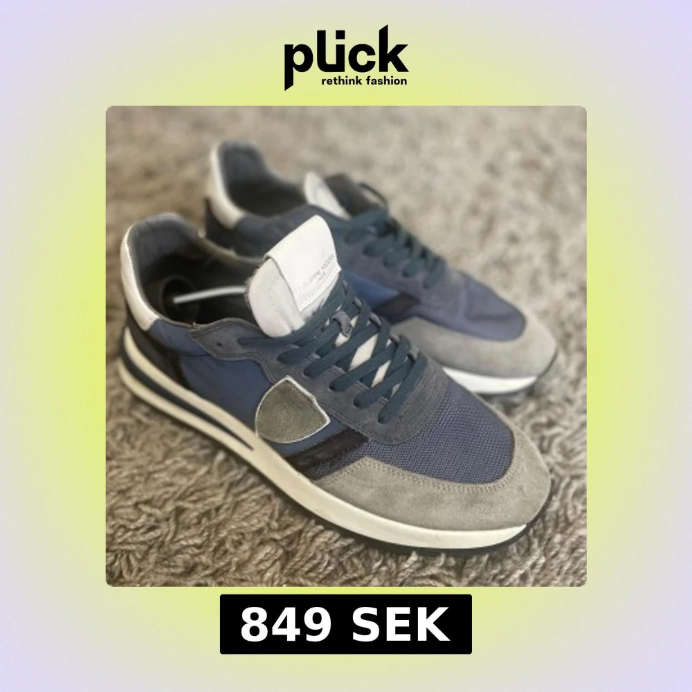 Snygga sneakers från Philippe Model i olika blå nyanser med detaljer i grå mocka och vit häl. Skorna har snörning, platt sula och en mix av mesh och mocka för en sportig vibe. Perfekta för dig som gillar stilrena och bekväma sneakers.