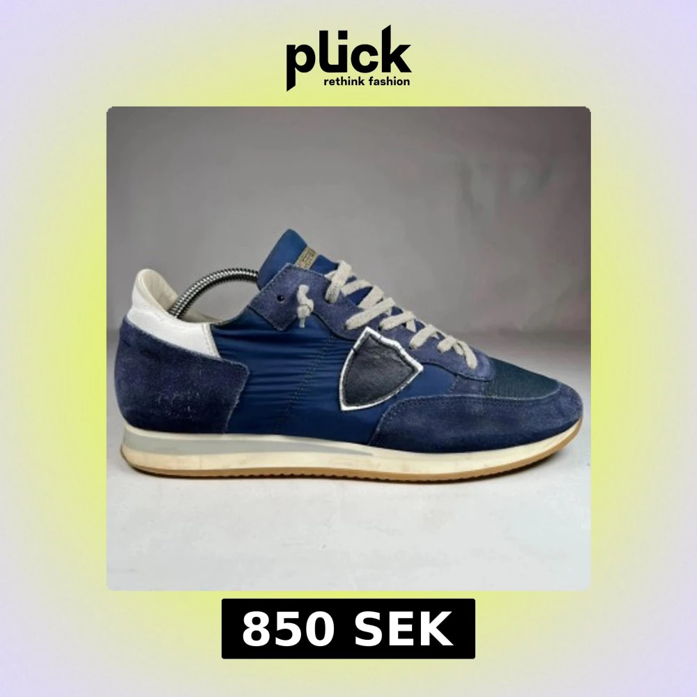 Snygga blå sneakers från Philippe Model med detaljer i mocka och mesh, vita snören och vit häl. Skorna har en ikonisk sköld på sidan och en klassisk gummisula. Perfekta för dig som gillar en sportig och stilren look.