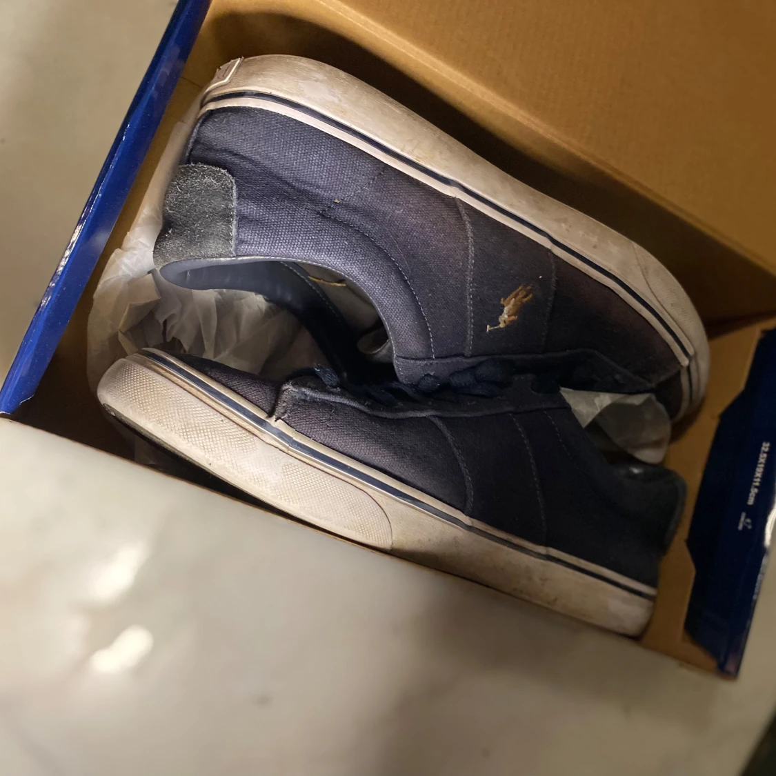 Snygga blå sneakers från Polo med klassisk design och snörning. Skorna har en vit sula och en diskret logga på sidan. Perfekta för en avslappnad stil.
