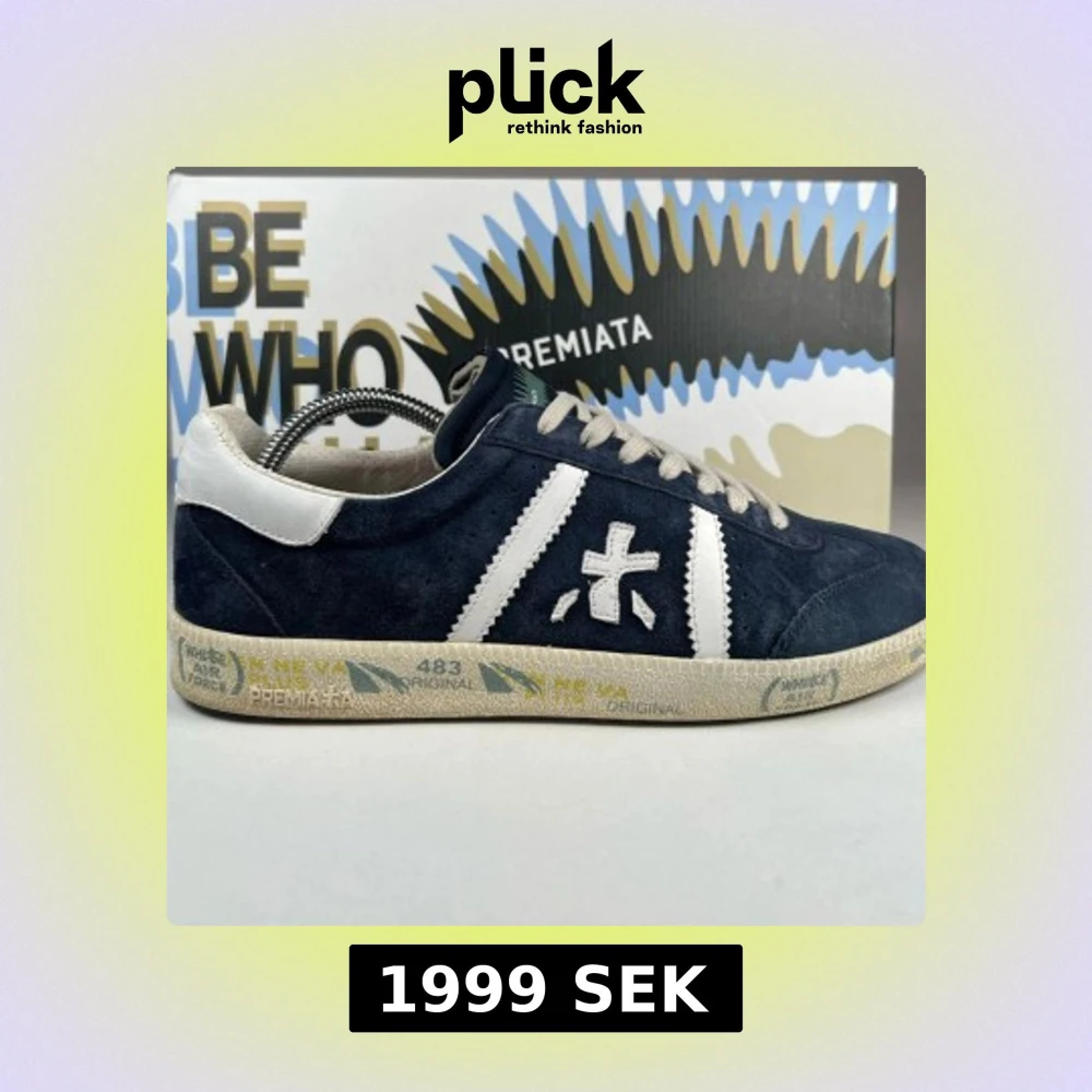 Snygga blå sneakers från Premiata i mocka med vita detaljer och snörning. Skorna har en unik design med märkets logga på sidan och en mönstrad sula. Perfekta för en stilren look. Passar både 42-43. Kom privat vid minsta funderingar!😴👊