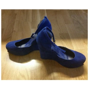 Utanför Stockholm så betalar köparen porto o frakt. Vi bestämmer nåt som funkar eftersom frakt kostar. Ville kolla intresse för dessa otroligt vackra blåa kilklackskor. Dom måste limmas och få nya klackar/sulor. Men synd och slänga dom. Blå mocka.