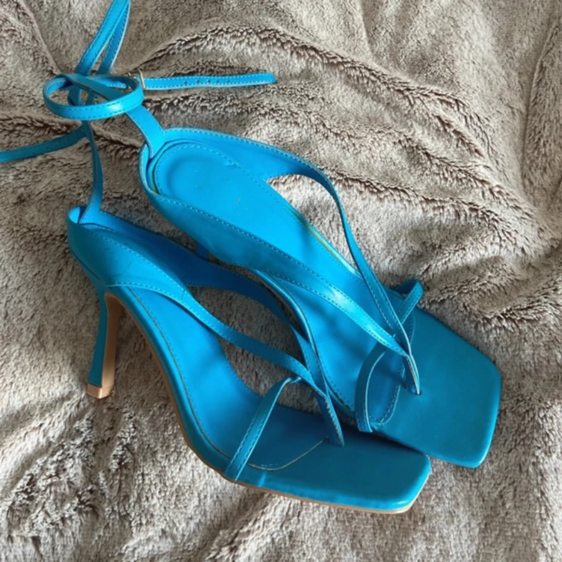 Korall / turkos blåa klackar som är otroligt fina!! Köpta på asos och endast använda en gång (se undersida på klacken). I storlek 39. Säljs då d ej kommer till användning. Otroligt fina till sommaren. Hör av er vid frågor.