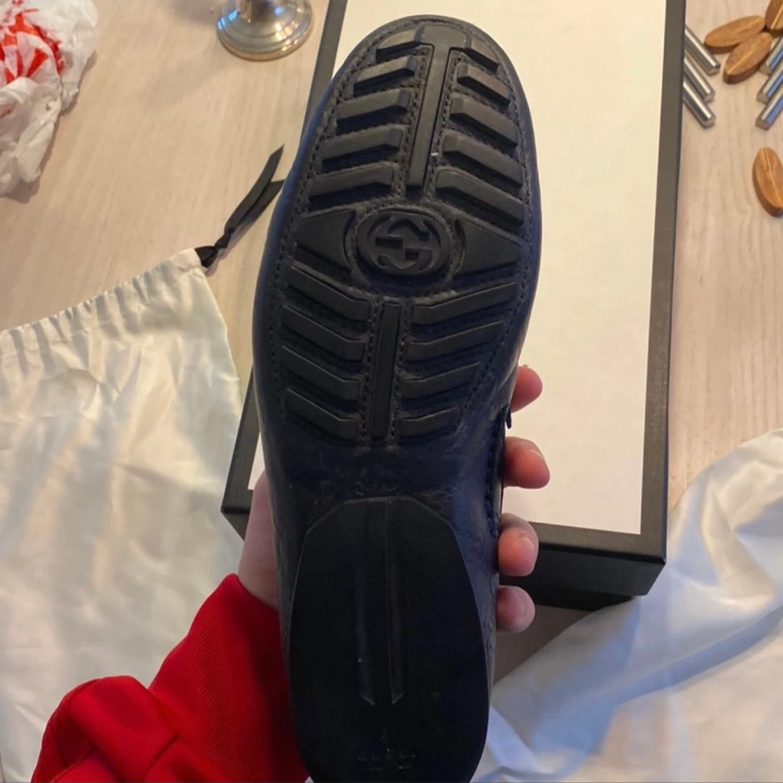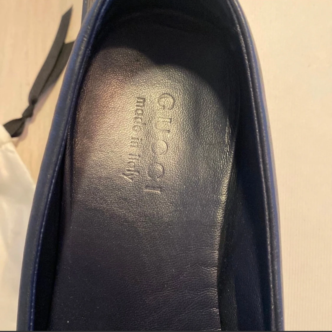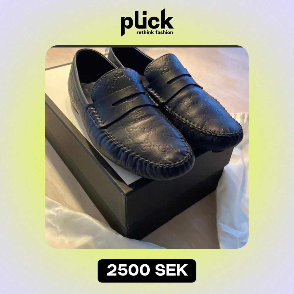 Säljer ett par stilrena blåa loafers från Gucci i skinn. Skorna har ett diskret mönster och är i mycket bra skick. Perfekta för både vardag och fest. Kommer med originalförpackning och dust bags