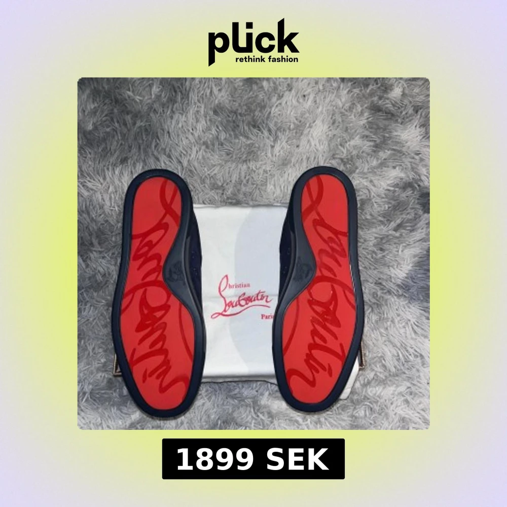 Snygga blåa sneakers från Christian Louboutin med den ikoniska röda sulan. Skorna har snörning och en elegant design som passar perfekt för en stilren look.