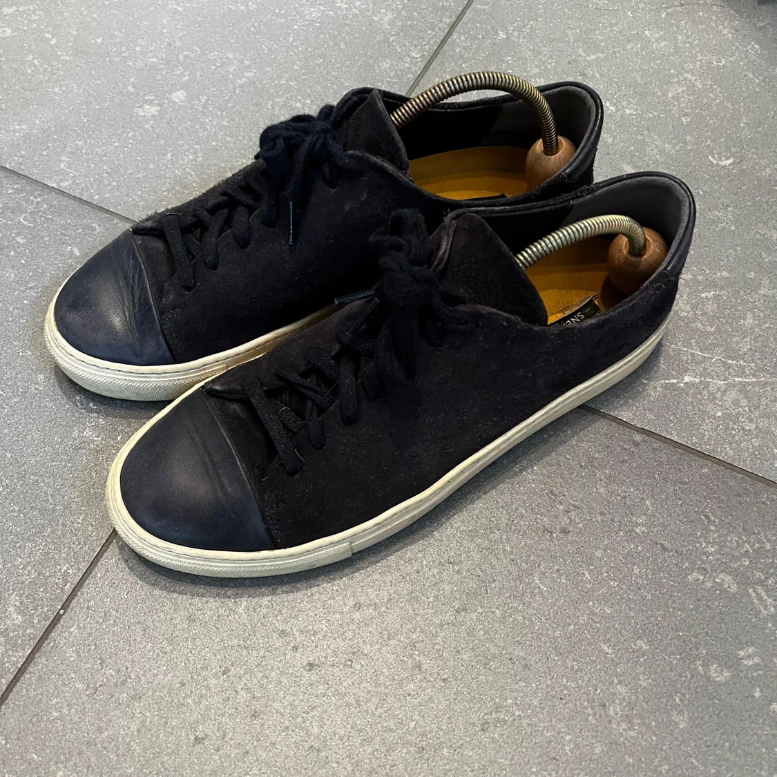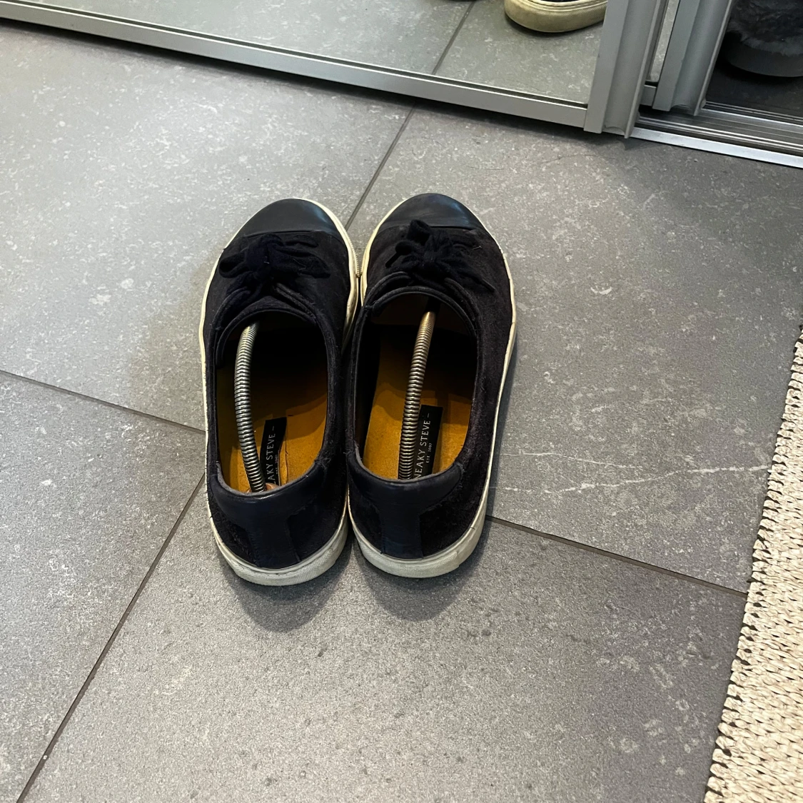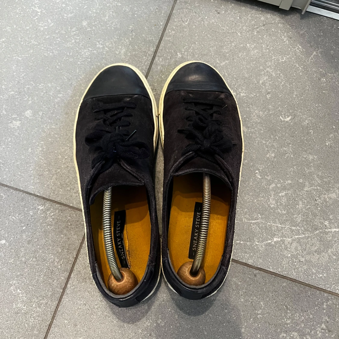 Svarta sneakers från Sneaky Steve med ovandel i mocka och tåparti i skinn. Skorna har snörning och en vit platt sula som ger en klassisk look. Perfekta för dig som gillar stilrena och tidlösa sneakers med en twist.