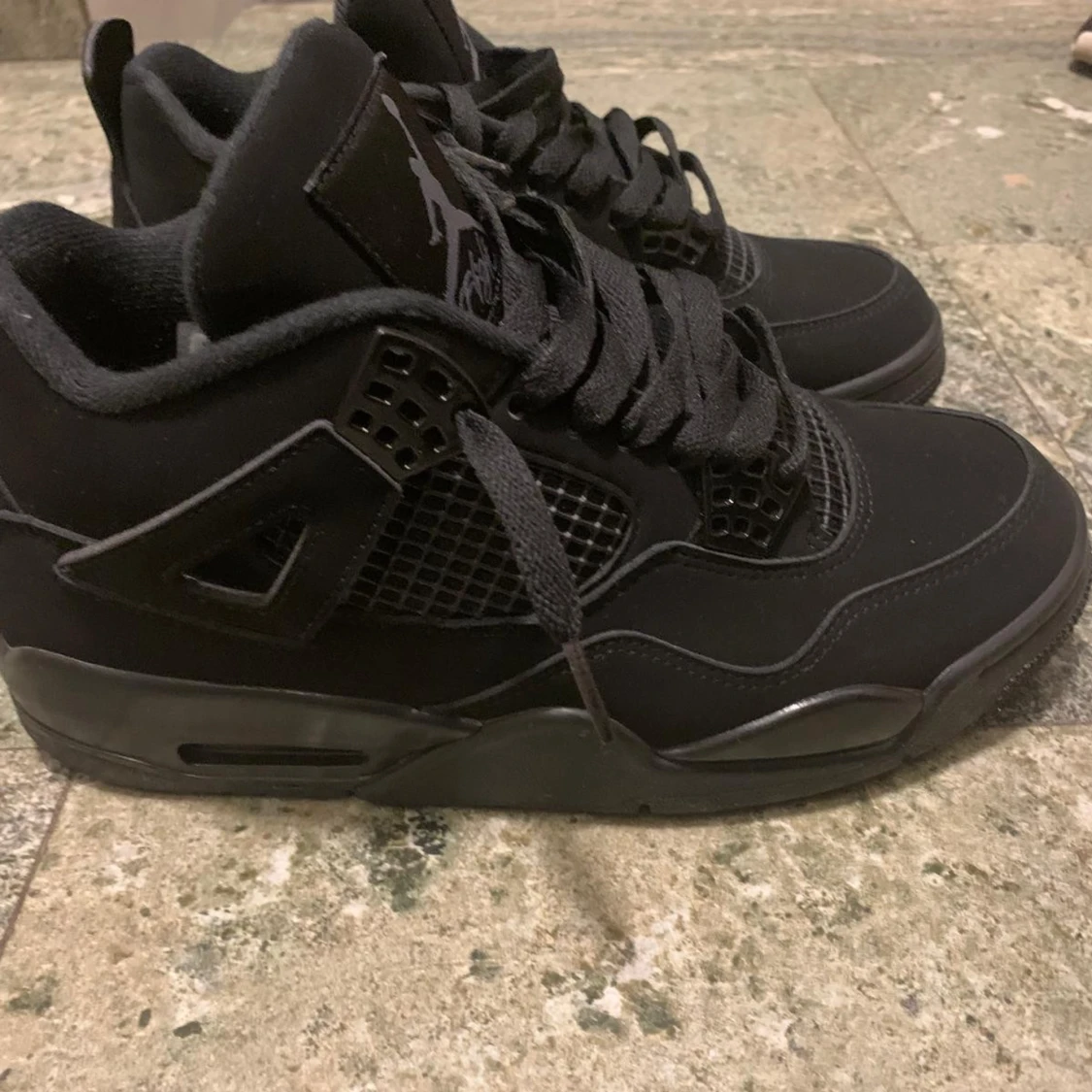 Jordan 4 black cat säljer på grund av att den inte var för liten jag har size 42 men jag rekommenderar att size upp en gång (så det passar perfekt för size 41) det är min rekommendation.den är helt ny jag har fat dem på mig typ 4 gånger