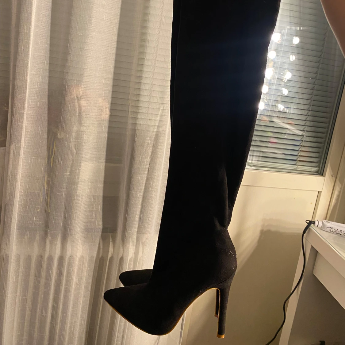 Säljer dessa snygga svarta stövlarmed stilettklackar då de ej kommit till vidare användning. Dragkedja på bägge insida av stövlar och de går strax över knäna. De är i mycket bra skick, använda endast 1 gång💗💗