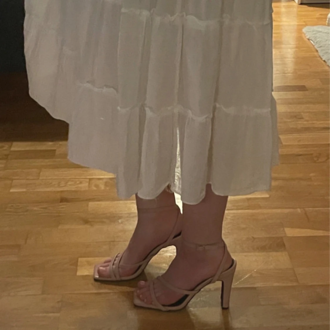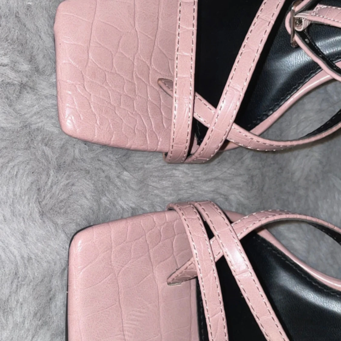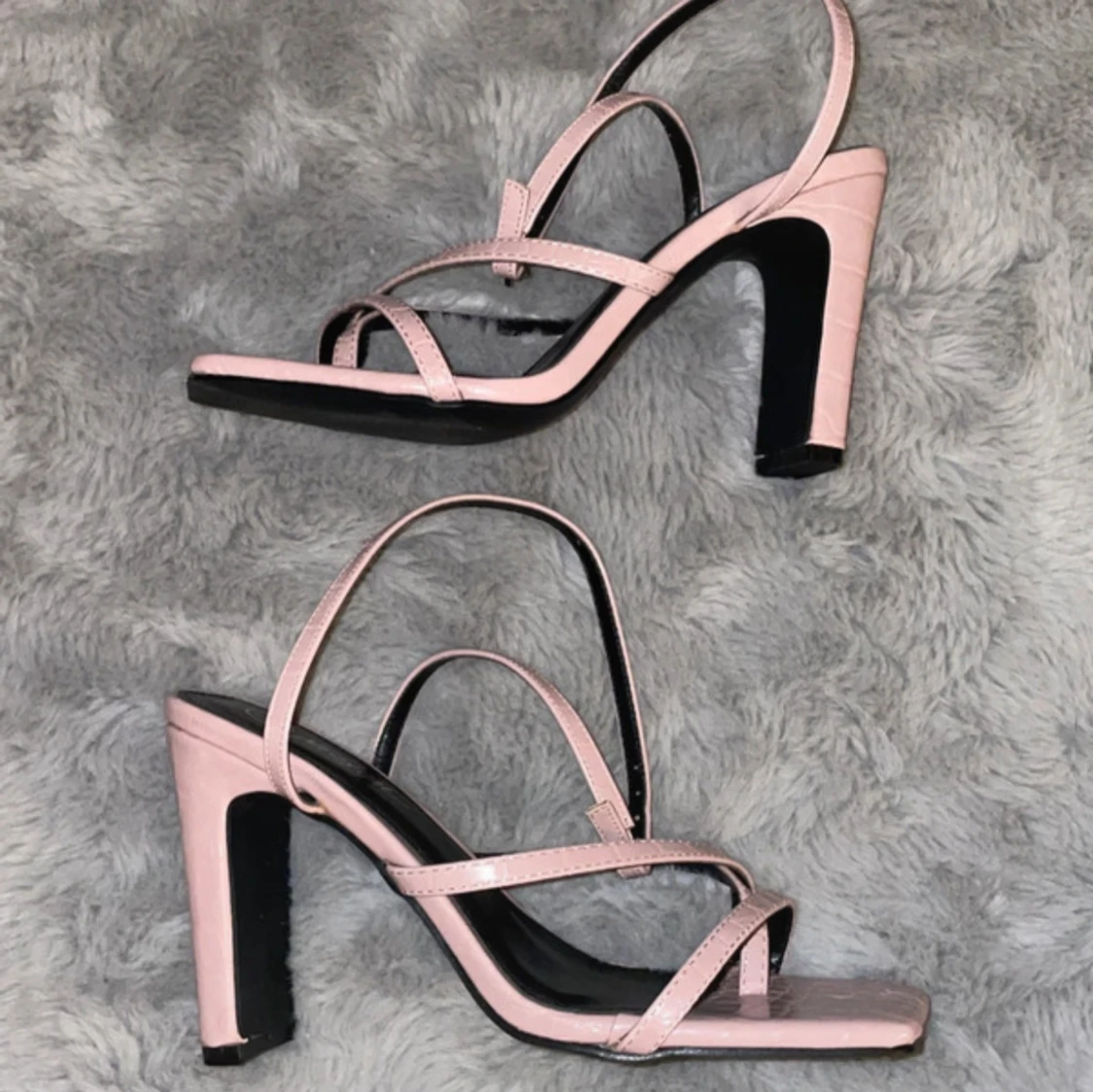 Boohoo klackar i storlek 36. Aldrig använt, inga defekter, endast haft på de inomhus en gång! Och ett obs, på sista bilden kan man se att stortån går mellan tårna som på sandaler, något som är bra att veta 😊👍