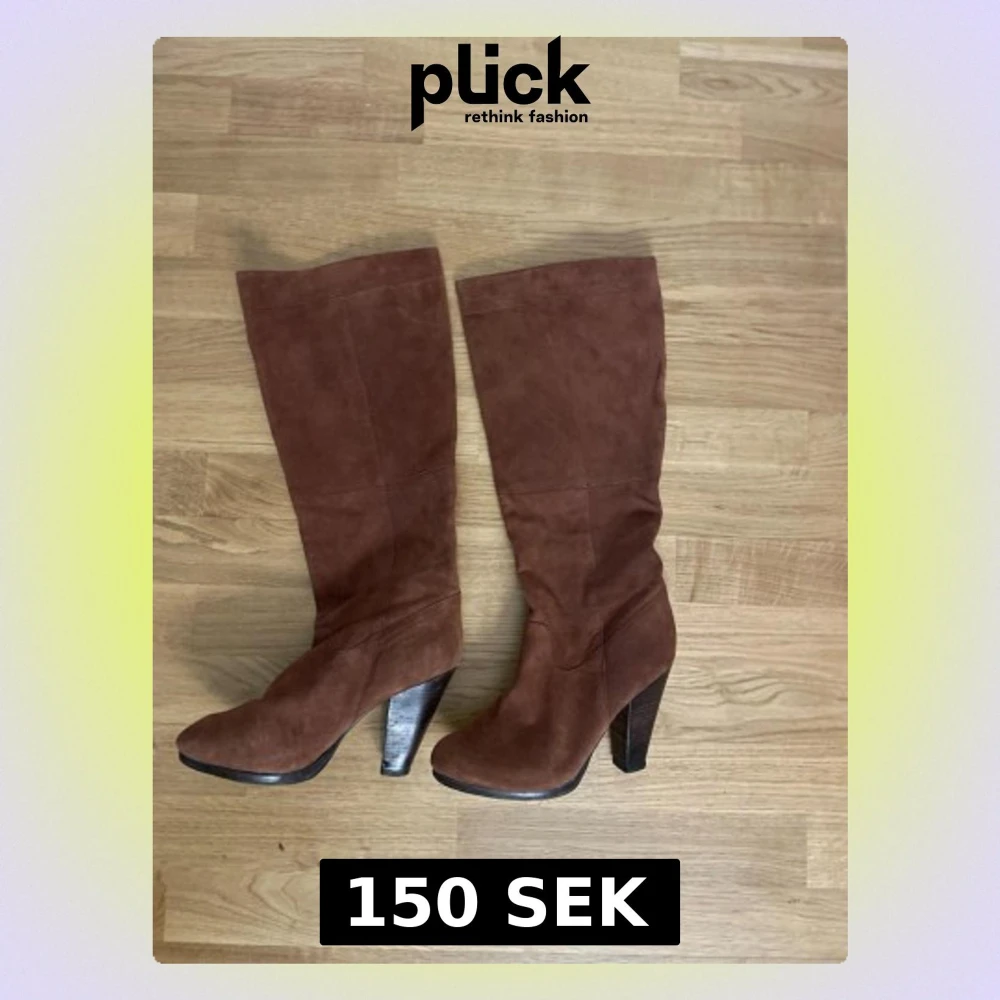 Snygga bruna stövlar i mocka med hög klack och rund tå. I nyskick!