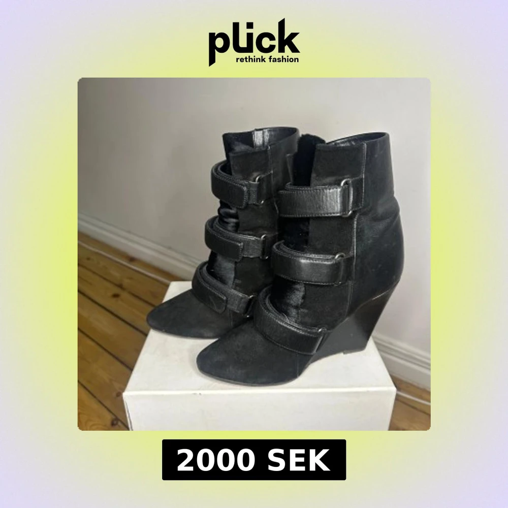 Snygga svarta Isabel Marant boots med kilklack och tre justerbara remmar. Tillverkade i skinn och mocka för en stilren look. Perfekta för att ge lite extra höjd och stil till din outfit.