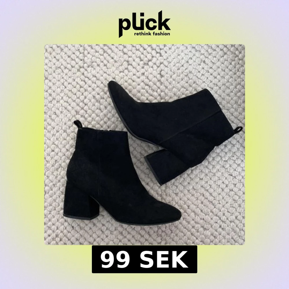 Snygga svarta boots från Alley i storlek 39. Skorna har en spetsig tå, blockklack och är gjorda i mocka. De har dragkedja på insidan för enkel på- och avtagning.