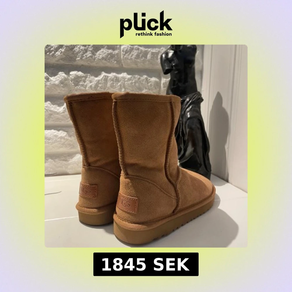 Bruna UGG boots i mocka - Säljer ett par klassiska bruna UGG boots med rund tå och platt sula. Bootsens utsida är i mjuk mocka och insidan är fodrad med fluffigt material för extra värme. De har en låg siluett och praktisk hälflik baktill. Perfekta för kyliga dagar och jättesnygga vinterskor!!