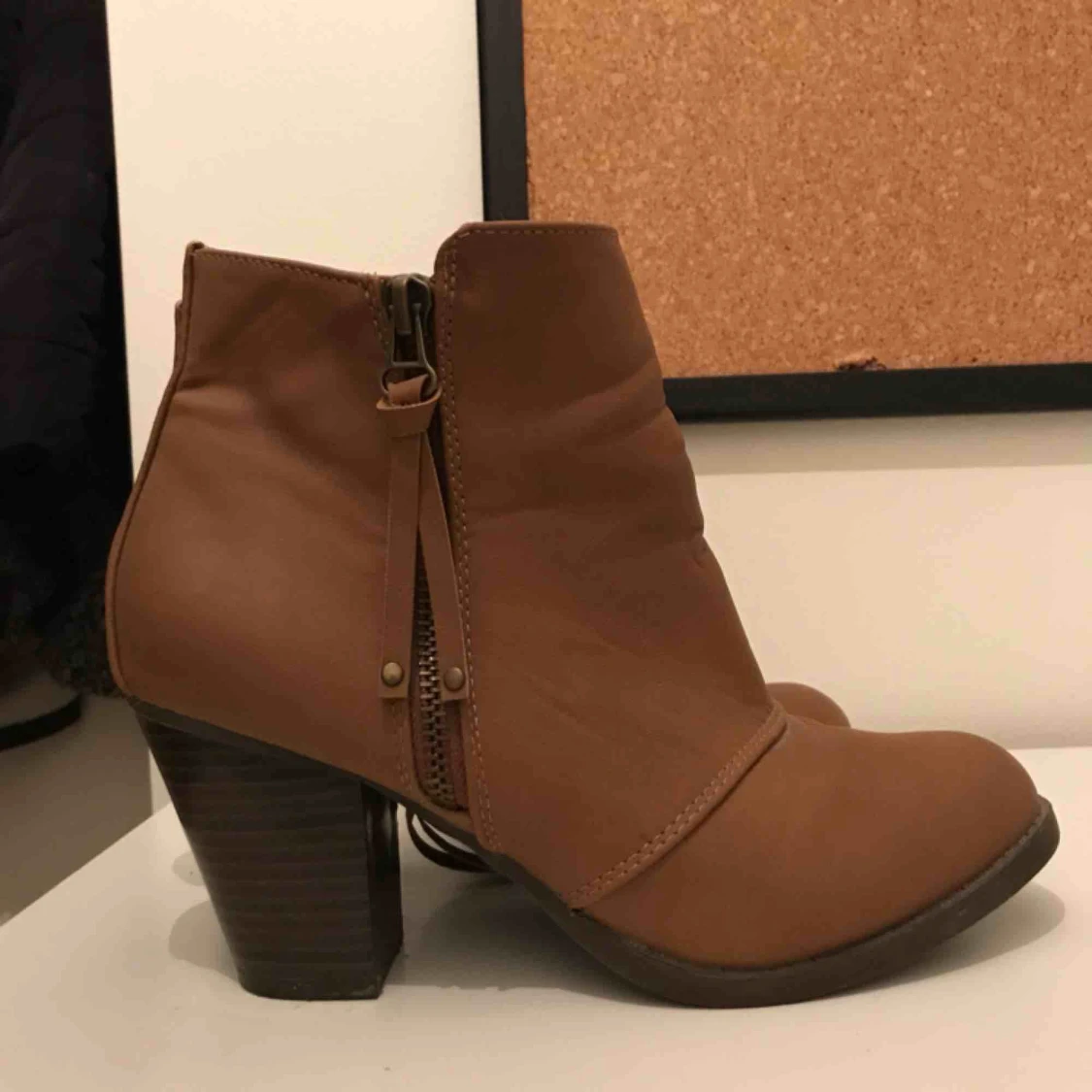 Säljer ett par skor i brunt fuskläder. De är i australiensisk storlek 8, men de passar mig som har 39. Skorna är använda men i fint skick och det slitage som finns syns på bilderna.
